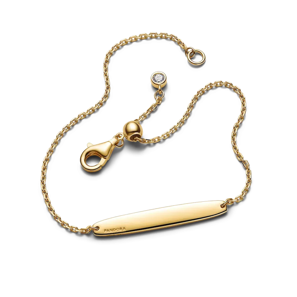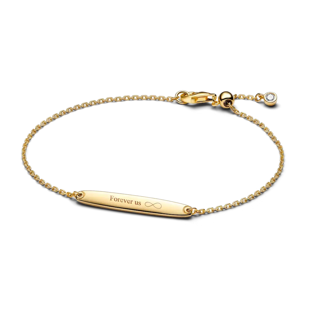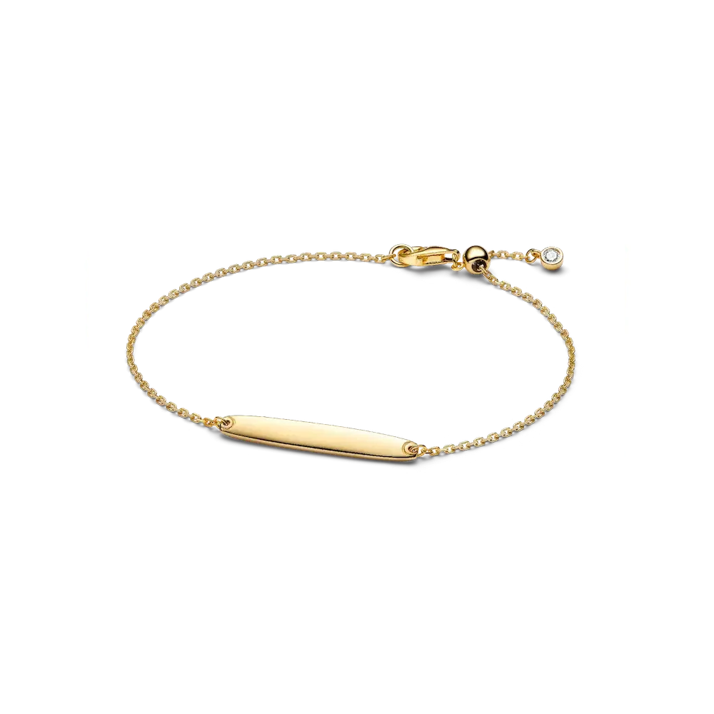 Put your story in words with our customizable bar bracelet in 14k gold plating. Engrave it with your unique message to make it truly special.