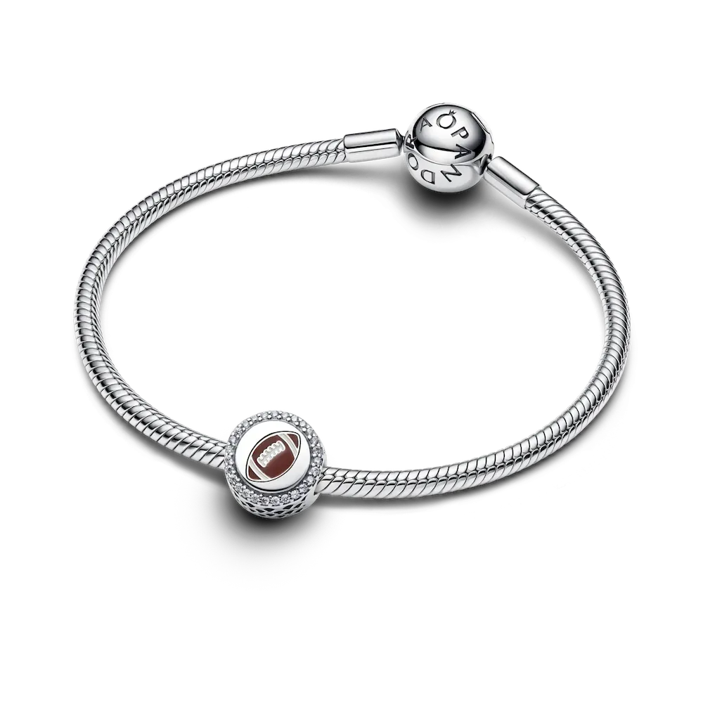 Score style points with our sterling silver football charm. With brown and white enamel details and sparkling pavé edges, it also offers a polished back to engrave a special message.