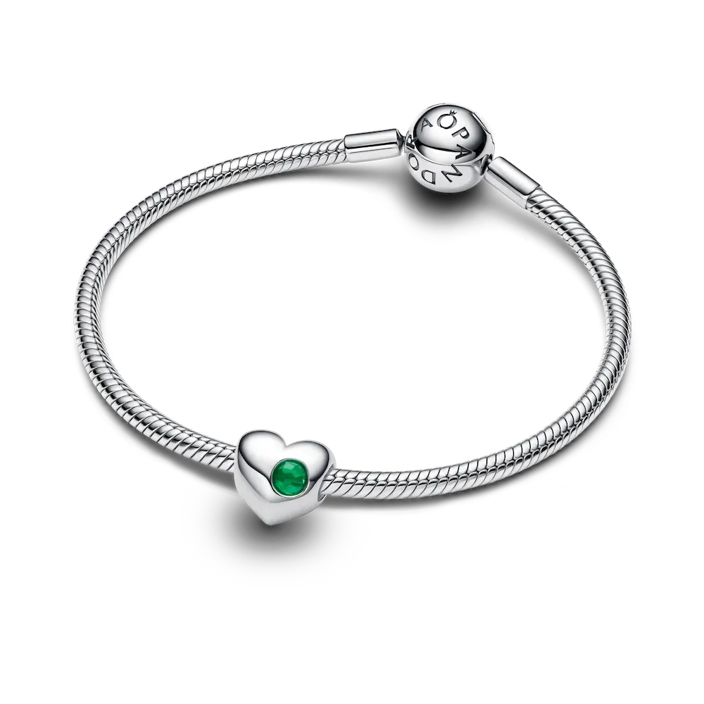 Engrave a message of love. Our sterling silver heart charm with a flush-set green man-made crystal is the perfect canvas for a personal note or meaningful memento.