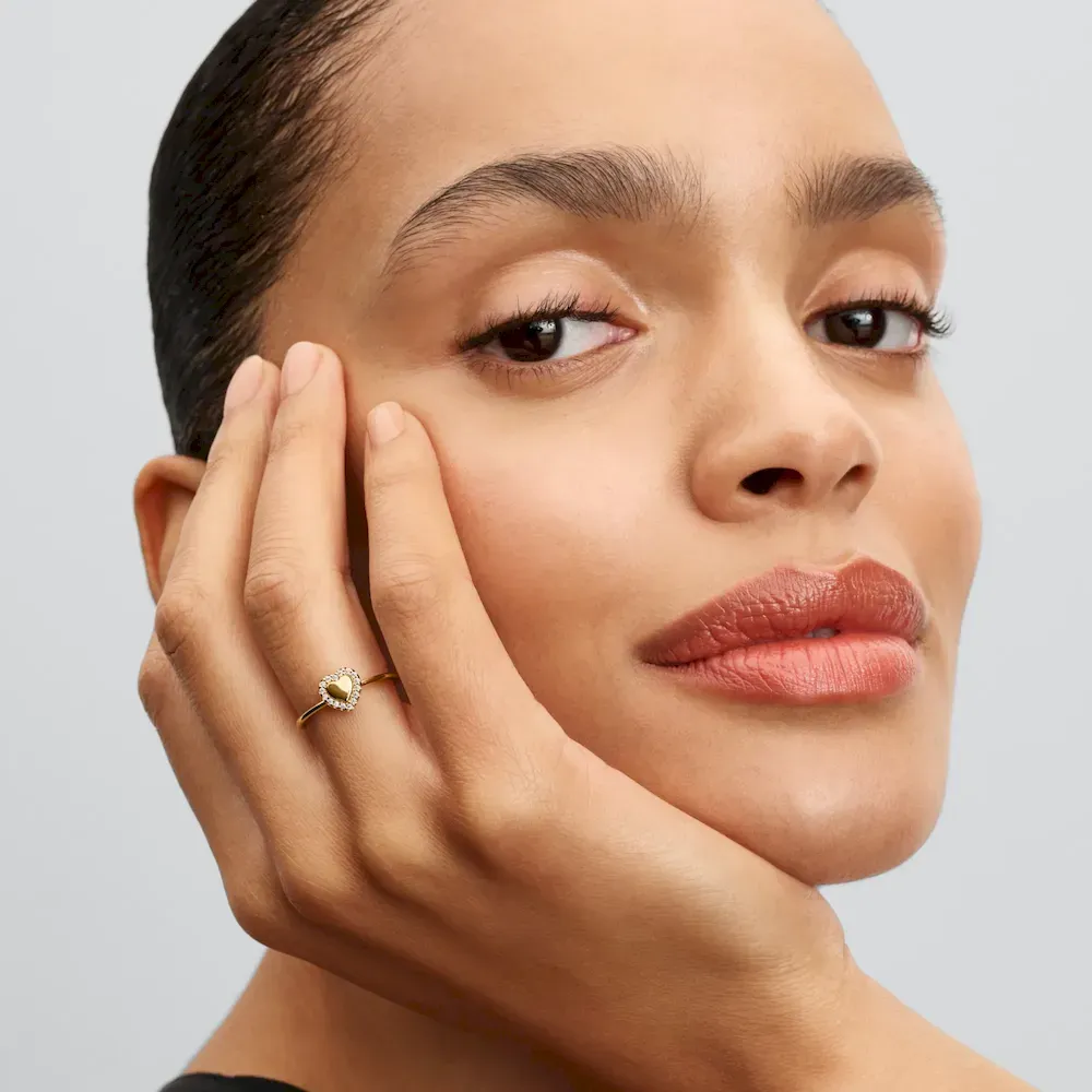 Make it personal with the Engravable Heart Halo Ring. This 14k gold-plated ring features a centre heart surrounded by sparkling pavé. The polished heart is designed to be engraved with your custom message. Choose initials, a date, or a tiny reminder that will make you –or your gift recipient –smile every time they see it. The end result will be a sleek metal piece with one-of-a-kind meaning.