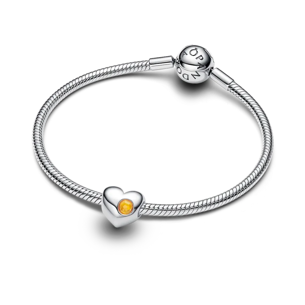 Engrave a message of love. Our sterling silver heart charm with a flush-set honey-colored man-made crystal is the perfect canvas for a personal note or meaningful memento.