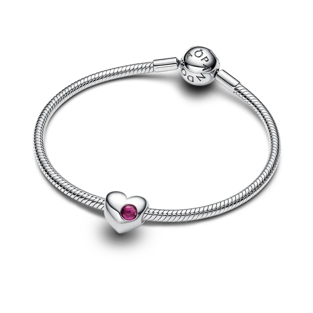 Engrave a message of love. Our sterling silver heart charm with a flush-set red man-made crystal is the perfect canvas for a personal note or meaningful memento.