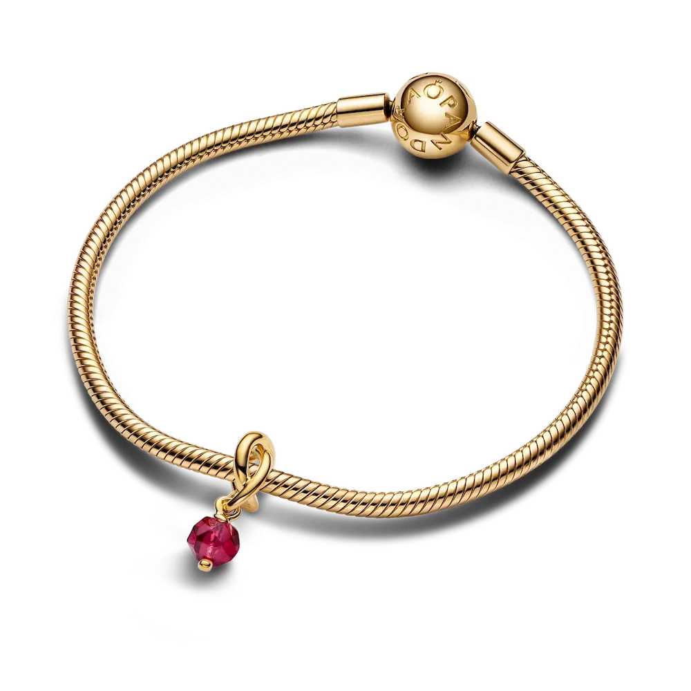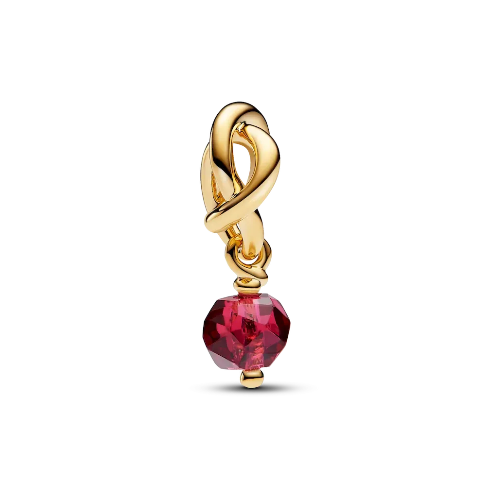 Wear a symbol of forever, that’s personal to you. This 14k gold-plated dangle charm is made up of a triple knotted circle that intertwines to resemble an infinity sign. The twist carries a faceted true red man-made crystal, which dangles from the charm. Wear yours to add a drop of color to your carrier, or gift it to the one you want in your life forever.