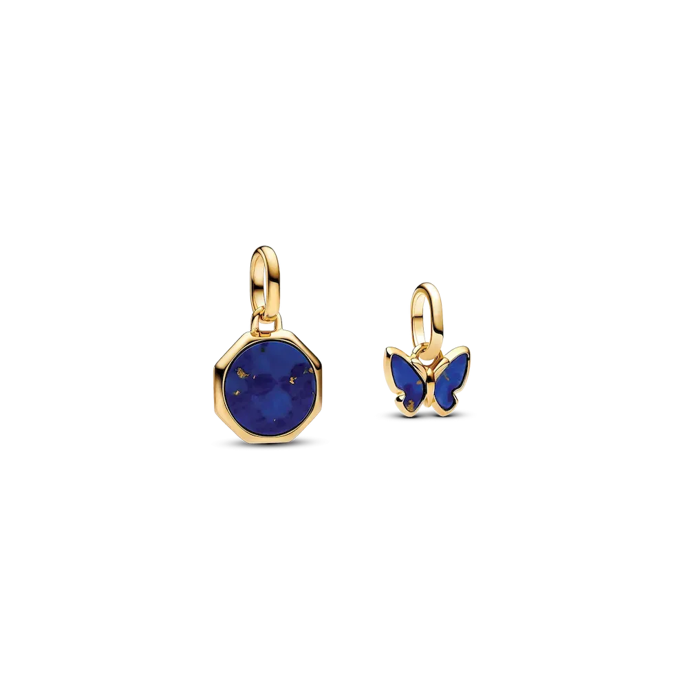 Fly free with this charm duo in 14k gold plating with blue details – perfect when paired or added to your existing charm mix. Includes a butterfly design plus an engravable charm for a meaningful message.