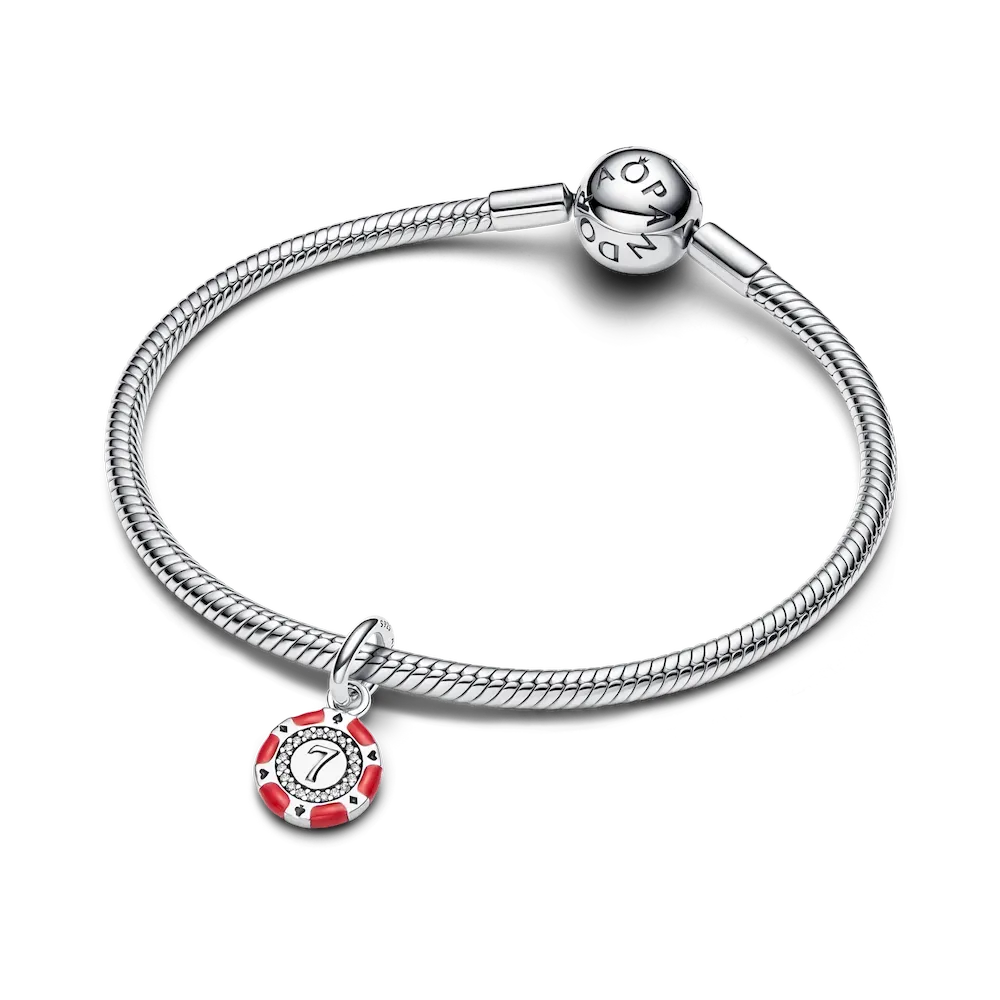 Manifest luck with this charm necklace set featuring a sterling silver anchor chain necklace and the Lucky Chip Dangle Charm detailed with cubic zirconia and painted enamel. Flip it for the engraved message “Lucky chip.