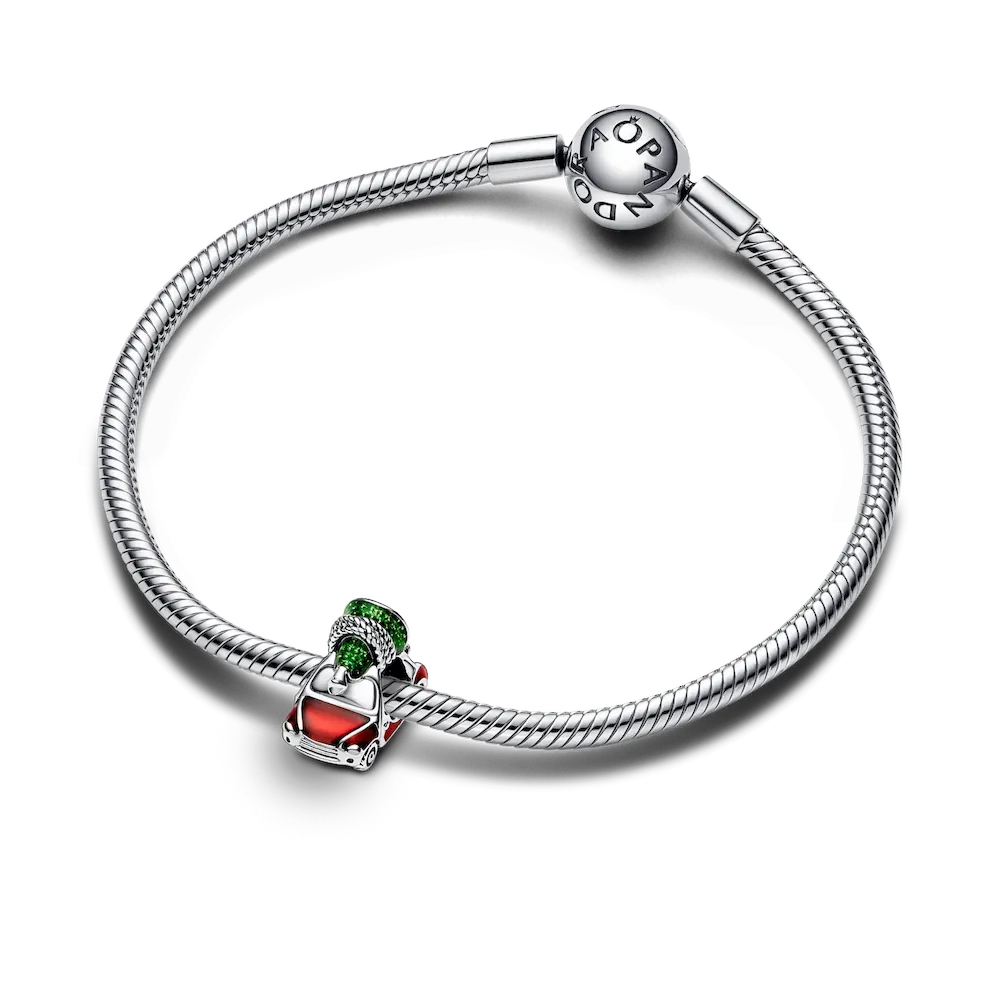 This Festive Car & Christmas Tree Charm captures the excitement of decorating our homes for the holidays and the anticipation of celebrating together. The sterling silver charm depicts a car with a Christmas tree tied to the roof and tiny 3D gifts all wrapped up in the back. The number plate reads