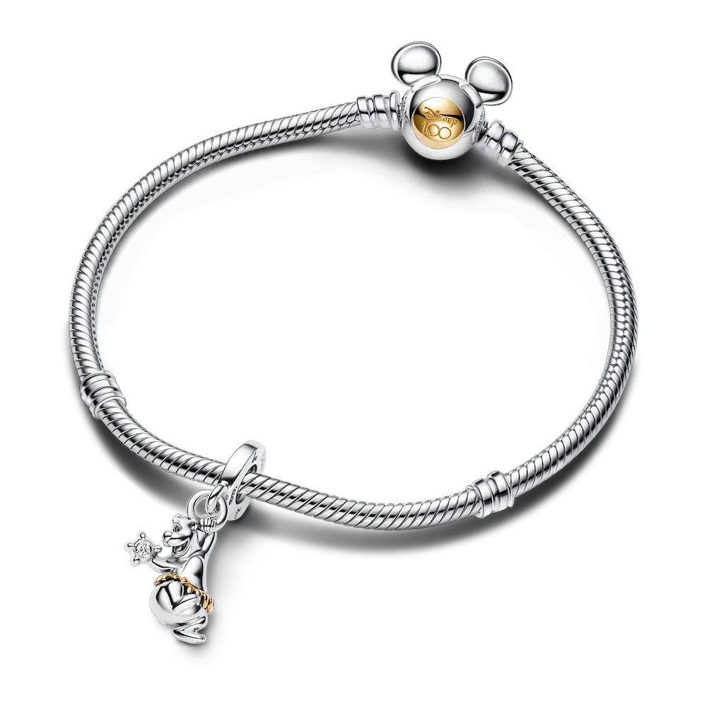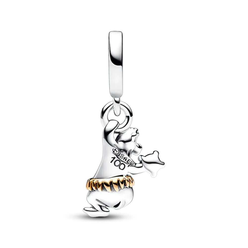 Can you hear a swinging beat? It’s our Disney 100th Anniversary Baloo Dangle Charm! The fun-loving, easy-going sloth bear from Disney’s The Jungle Book, Baloo is the life of the party and a loyal friend. Inspired by a scene from the much-loved film, our sterling silver charm captures Baloo dancing to the beat, wearing a solid 14k gold grass skirt and grasping a sparkling lab-grown diamond in one paw. To commemorate 100 years of magic,
