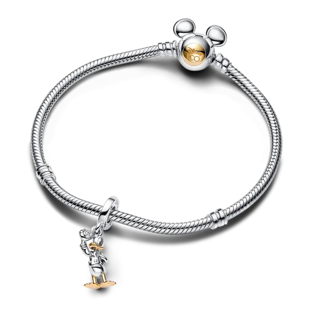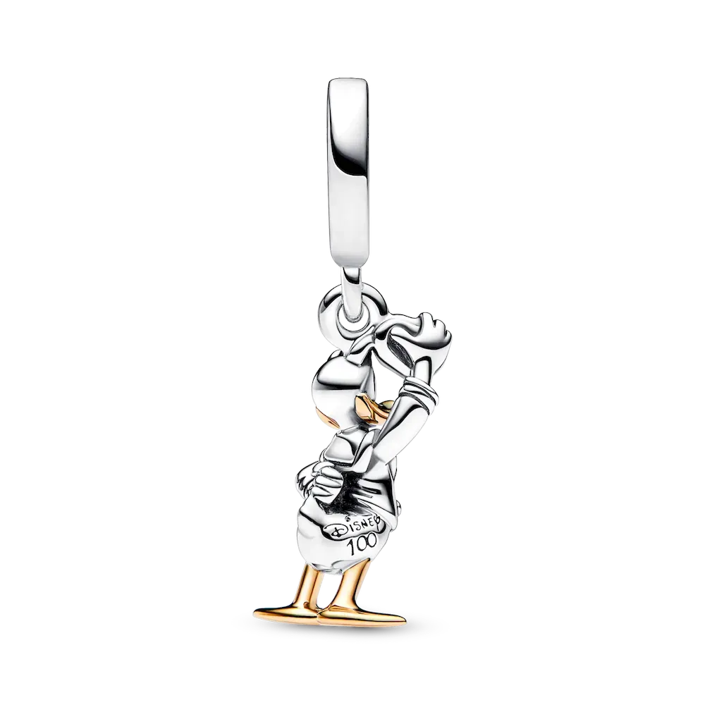 For the ultimate Disney fan – collect our Disney 100th Anniversary Donald Duck Dangle Charm and celebrate one of Disney’s most iconic original characters. Outfitted in his classic sailor shirt, Donald Duck is hand-finished in sterling silver with 14k gold accents on his beak and feet. Striking a jaunty pose, Donald raises his sailor’s cap to reveal a sparkling lab-grown diamond. To commemorate 100 years of wonder,