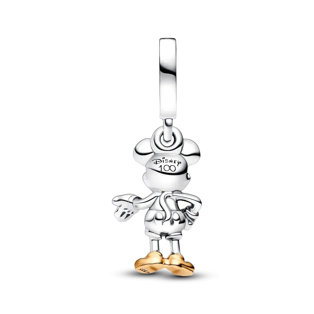 Collect a piece of Disney history with the Disney 100th Anniversary Mickey Mouse Lab-grown Diamond Dangle Charm. This sterling silver charm depicts the iconic Mickey Mouse in lifelike detail, with a lab-grown diamond sparkling from his hand, solid 14k gold shoes and black hand-applied enamel details on his eyes and nose. Collectors will appreciate the engraved Pandora, Disney and Disney100 logos that adorn this charm. A symbol of imagination, optimism and fun, this Mickey Mouse charm is sure to make anyone smile.
