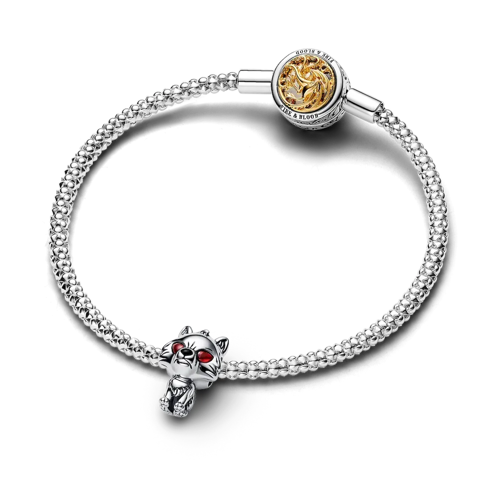 Carry a symbol of loyalty and protection with the Game of Thrones Ghost Direwolf Charm. Inspired by a beloved Game of Thrones animal character – Jon Snow’s dependable direwolf, Ghost – this sterling silver charm features realistic grooved fur lines and facial details, including red lab-created crystals as eyes and black hand-applied enamel on the snout. An ideal gift for fans of the series, this charm serves as a reminder that safety can come in all forms of people, places and creatures.