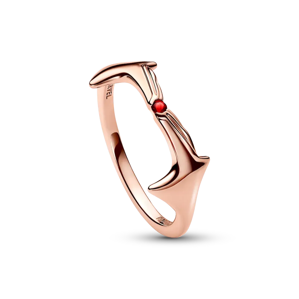 Be charmed by the chaos with the MARVEL Scarlet Witch Ring crafted in our 14k rose gold-plated unique metal blend. Shaped like Scarlet Witch’s iconic headdress, the ring band features four pointers and has a red man-made crystal in the middle. Add the ring to your team of Marvel legends to balance the power between the good, the bad and the misunderstood or gift it to the Marvel fan in your life.
