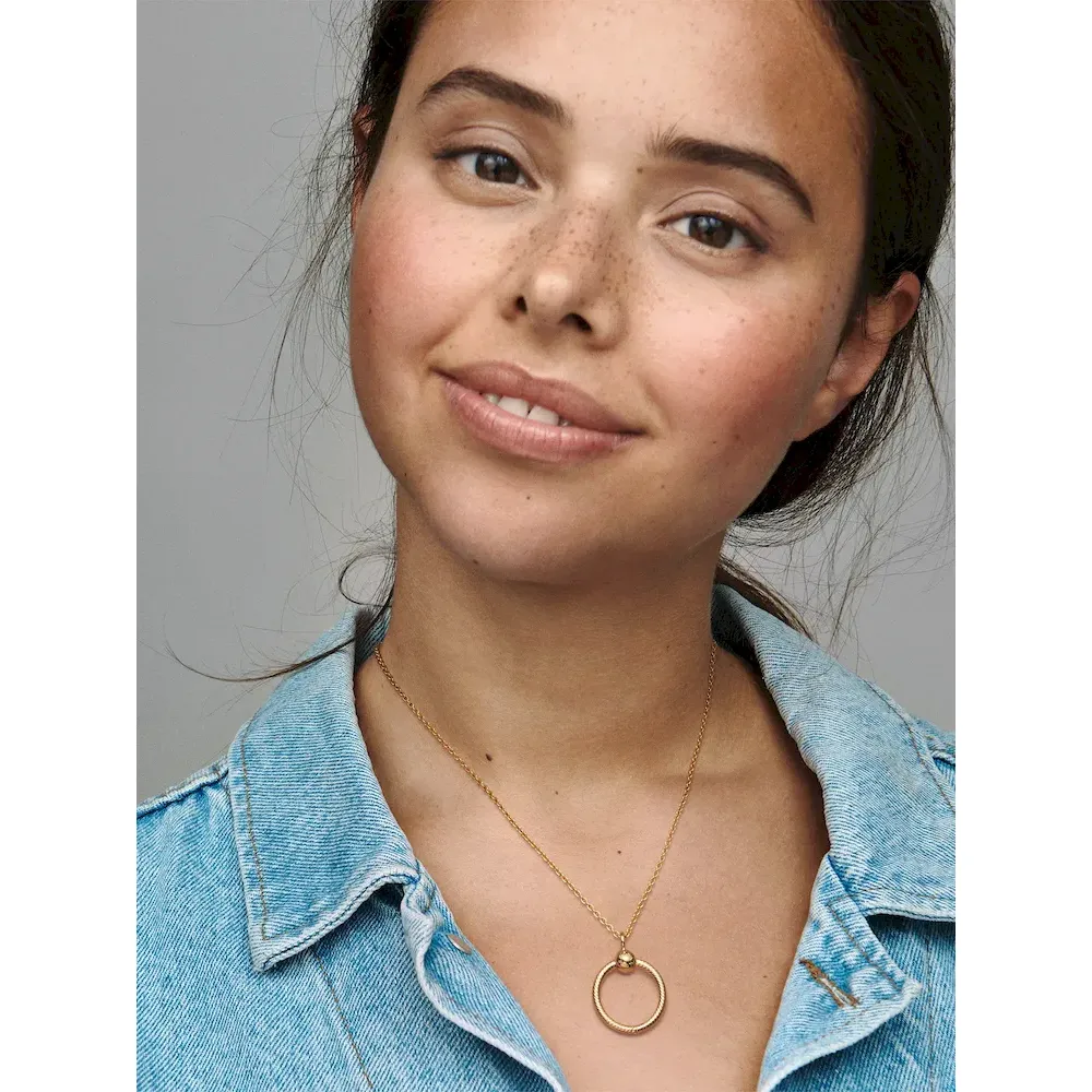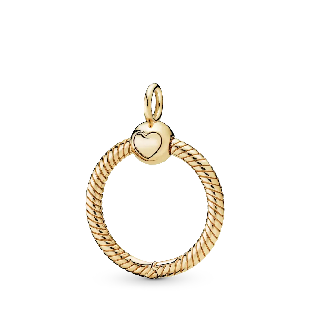 Add a splash of sophisticated style and discover a whole new way of collecting, displaying and showing off your charm collection with this Pandora Moments O pendant. Hand-crafted in Pandora Shineâ„¢ (18k gold-plated unique metal blend), this exciting pendant design is inspired by the Pandora crown O and features an intricately detailed snake chain look. You can elevate your look and make it totally unique by adding up to three charms, dangles or pendants to your O Pendant.