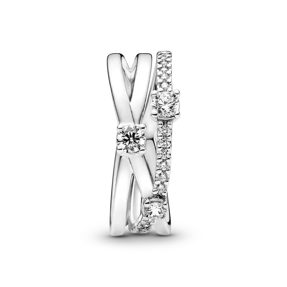 Say hello to a bold, pre-stacked statement piece with the Sparkling Triple Band Ring. This new take on a bestseller is accented with three large cubic zirconia and a pavé of smaller stones. The interlinked rings are a symbol of families coming together; the perfect gift for mom.
