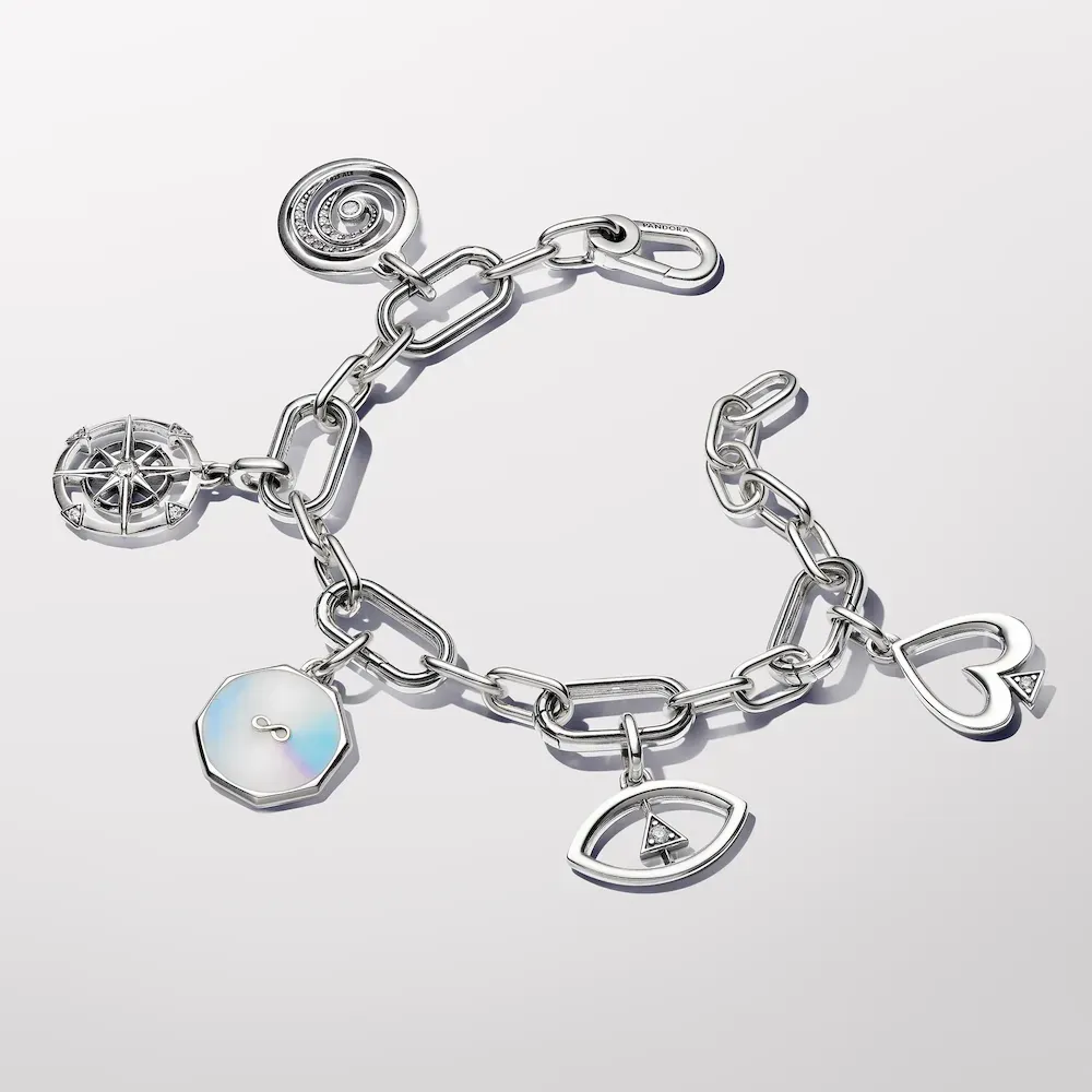 Enhance your styling possibilities. This sterling silver bracelet features five smaller links interlocked with five larger openable links. Links can be swapped out or added, and each openable link can be styled with dangle or medallion charms.