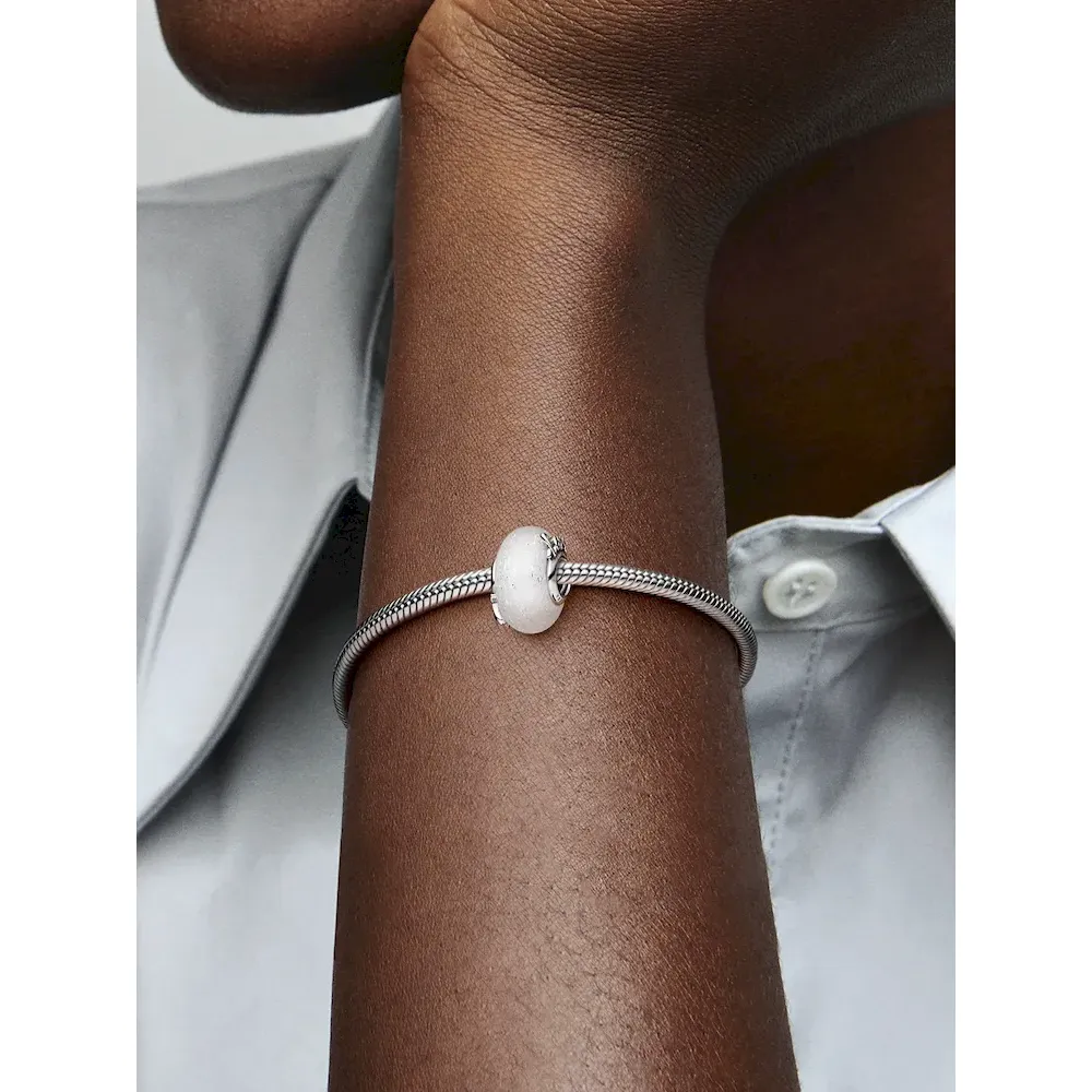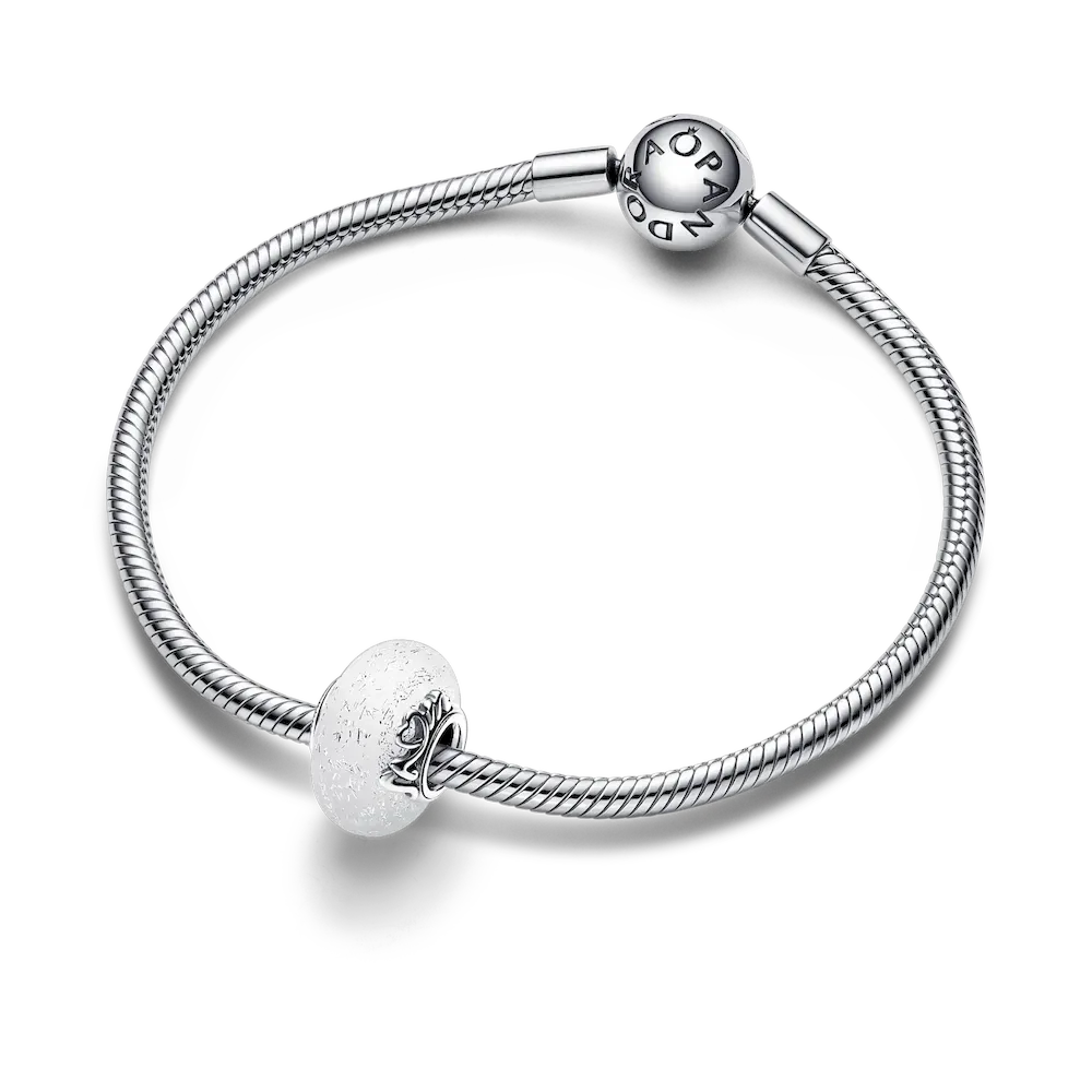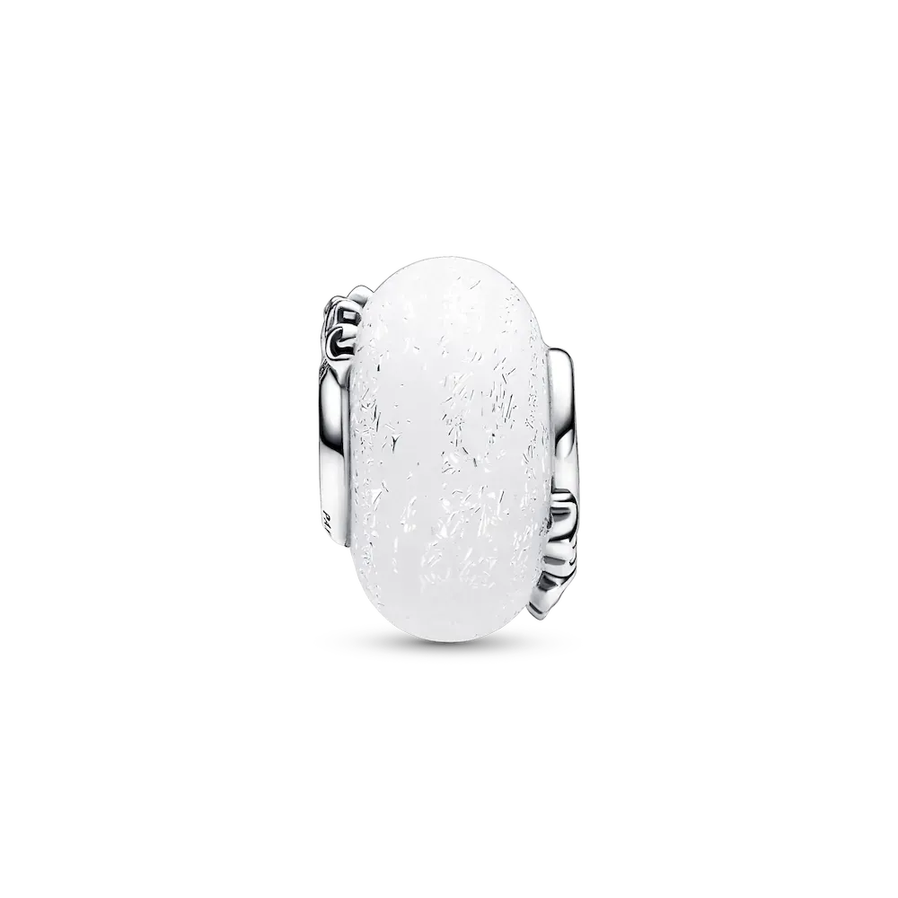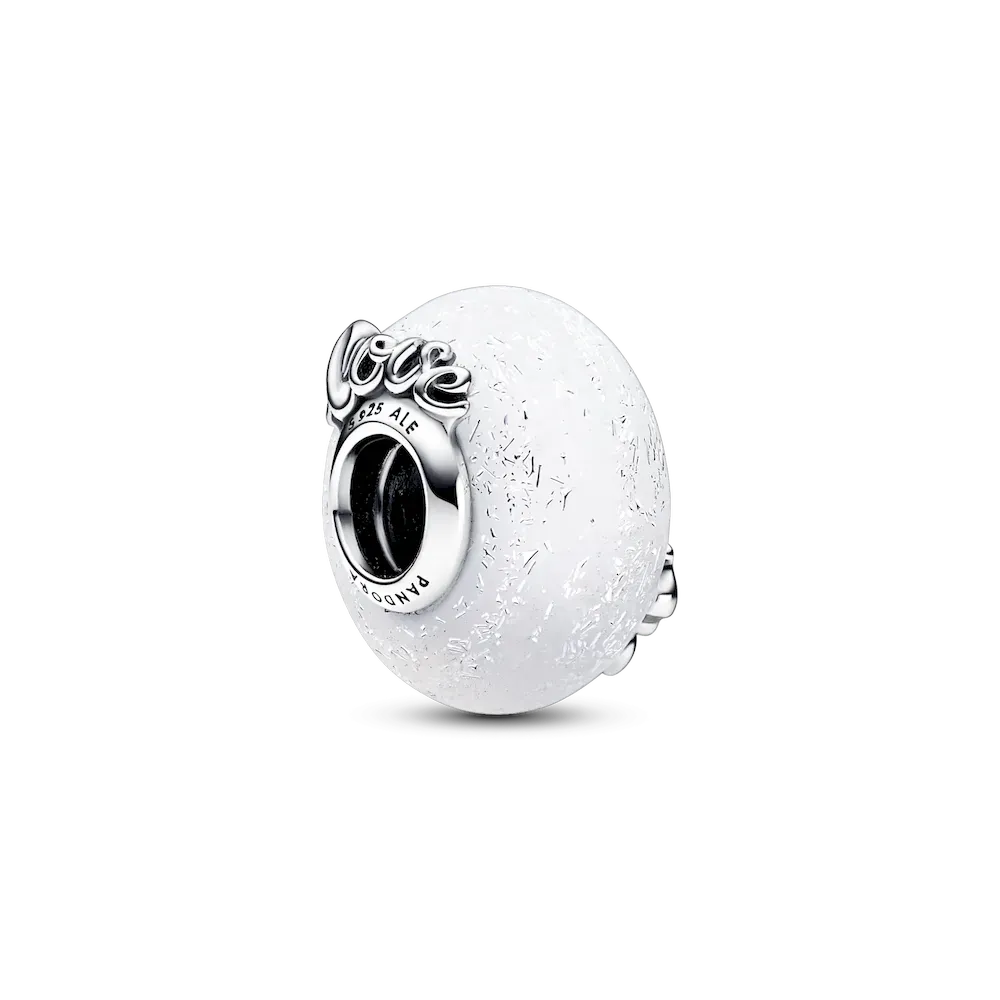 Gift a sweet message of love to the mother figure in your life with the Glittery White Murano Glass Mom & Love Charm. This hand-finished charm is crafted from sterling silver and glittering white Murano glass with a shimmery light-reflecting effect. Raised sterling silver scripts on either side of the charm’s core read