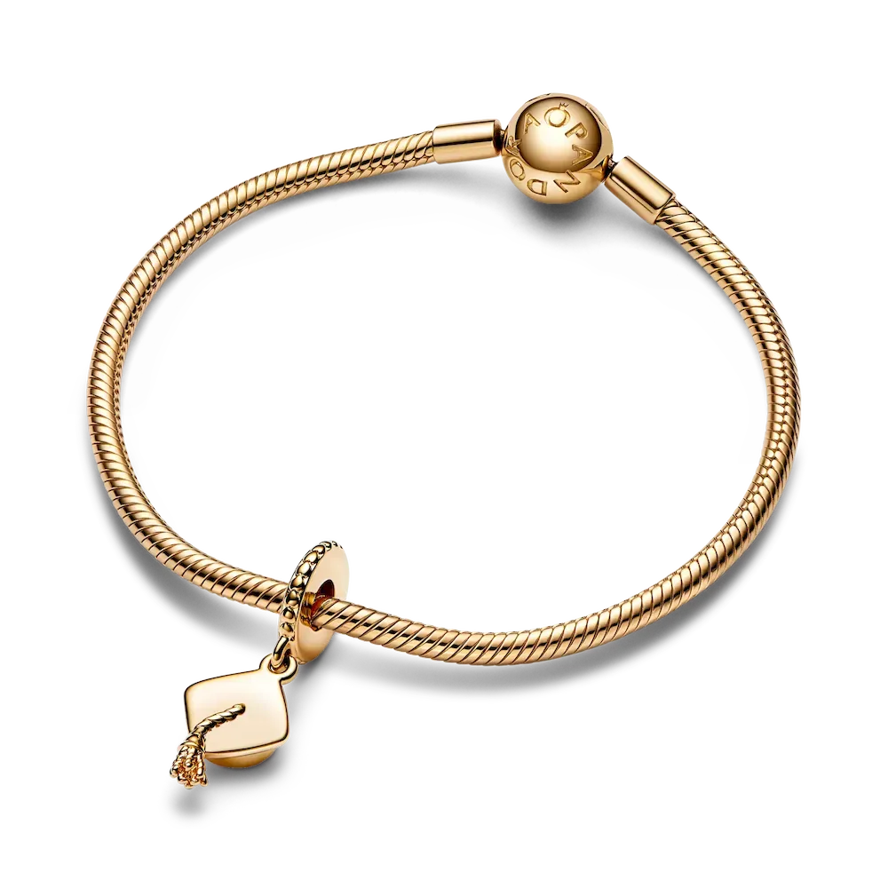 Celebrate their hard work and dedication with the Graduation Cap Dangle Charm. This 14k gold-plated dangle charm features a graduation cap with a realistic grooved tassel detail and the message