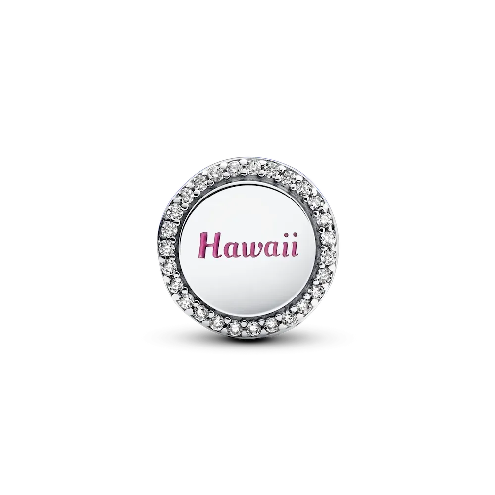 Bring a touch of tropical charm to your collection with this vibrant hibiscus flower charm. Crafted from sterling silver, it features a bright pink enamelled hibiscus on one side and