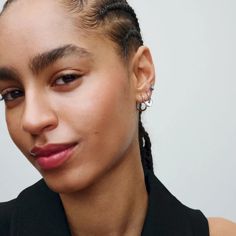 These earrings are a reminder to face the world with love. The sterling silver hoops feature a moveable heart dangle that faces forward, making a bold statement. Style yours with more heart-shaped hoops from Pandora Moments, to double up on love, or wear them as part of a personalized stack of your own.