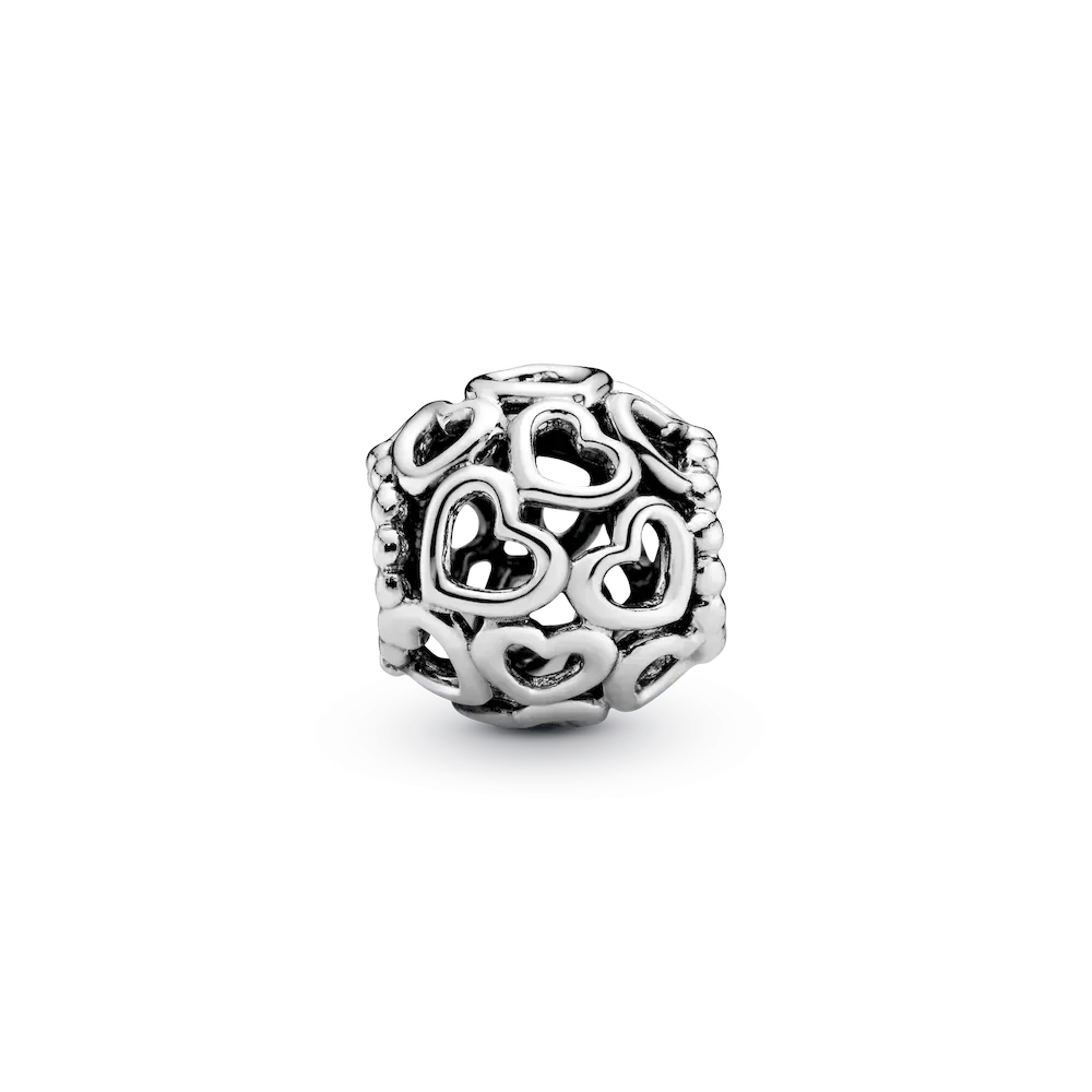 Hearts are an enduring symbol of love. Expertly hand-finished, this expressive sterling silver charm is shaped with openwork hearts that provide a glimpse of the carrier its worn on. Thread it on a favorite Pandora Moments bracelet or bangle together with other charms that tell your story. You can even wear it as a necklace pendant.