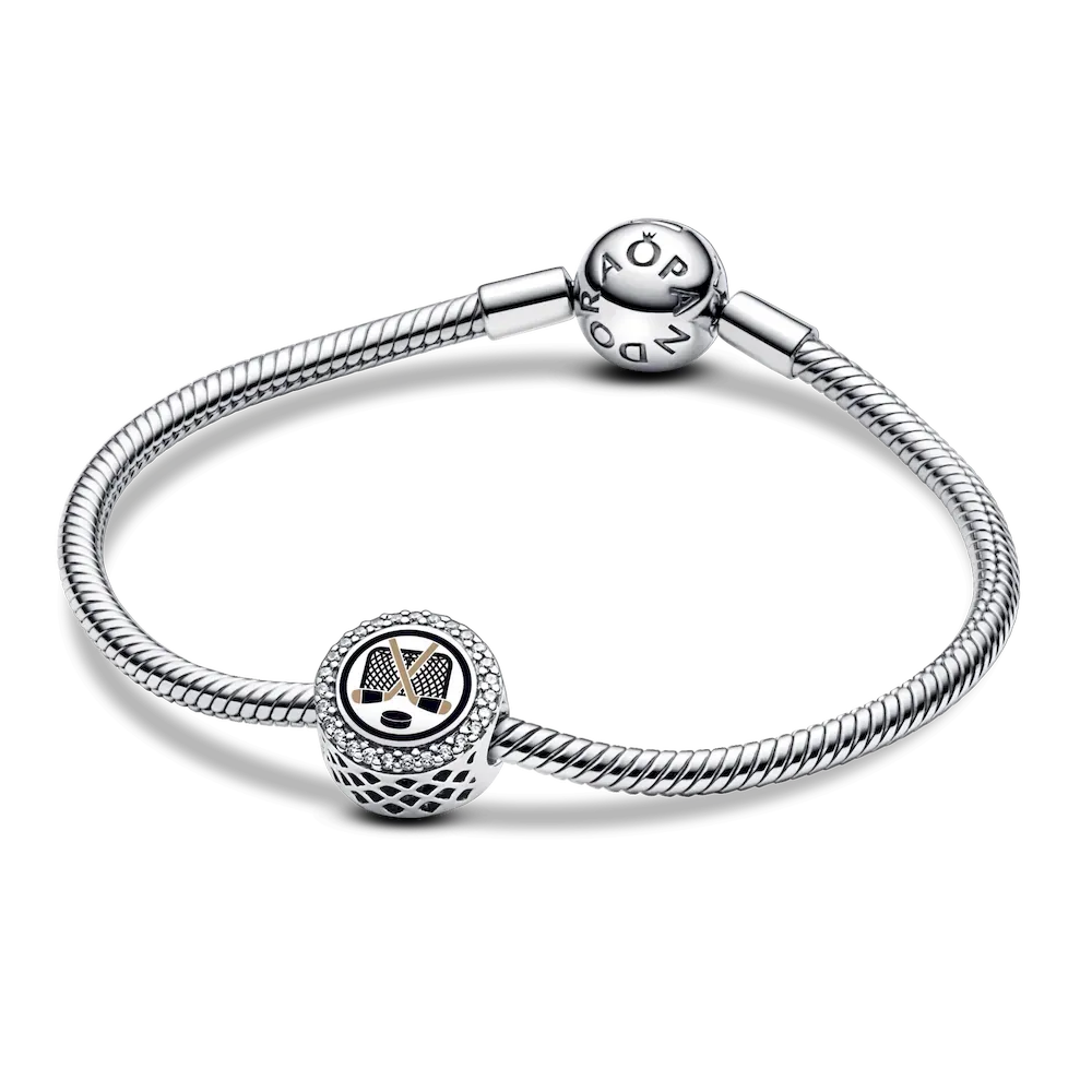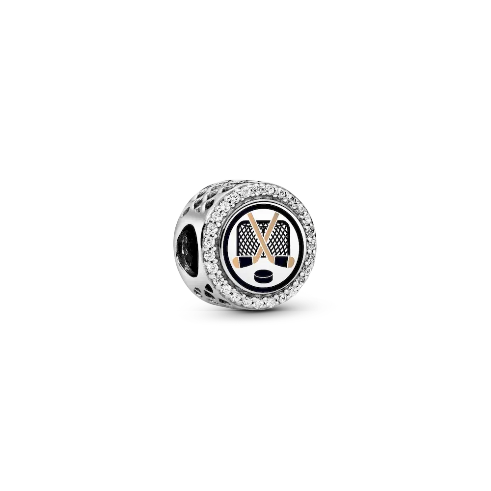 Hit the ice in style with this sterling silver hockey charm, detailed with cubic zirconias and a blank back ready for your custom engraving.