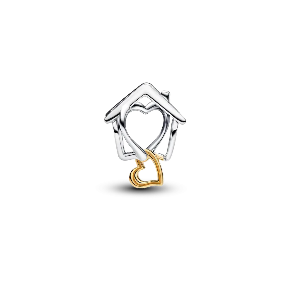 Find warmth in every detail. This sterling silver and 14k gold-plated charm features an openwork house with a dangling heart and the engraving ‘With you, I’m home’. A symbol of love and belonging.