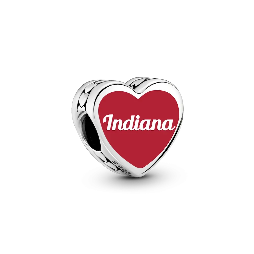 Show your Hoosier pride with this Indiana heart charm. Crafted in sterling silver, a fast favorite for fans of Indiana’s racing legacy.
