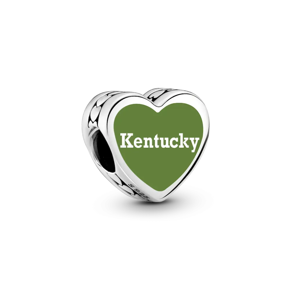 Show your Southern pride with this Kentucky sterling silver heart charm capturing the spirit of the Bluegrass State.