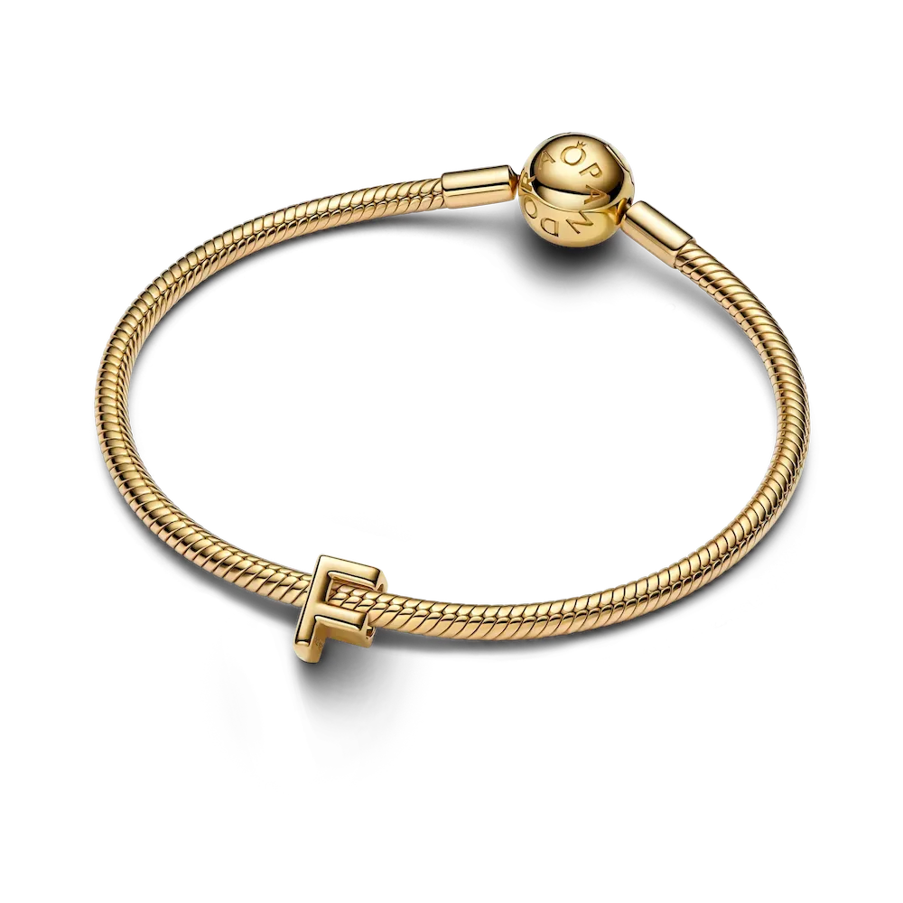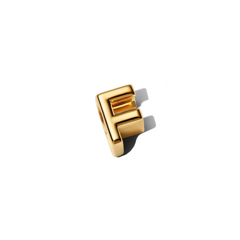 Start your story with a customized charm, featuring a rounded letter F design.