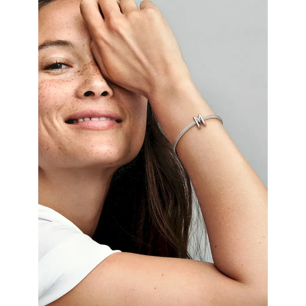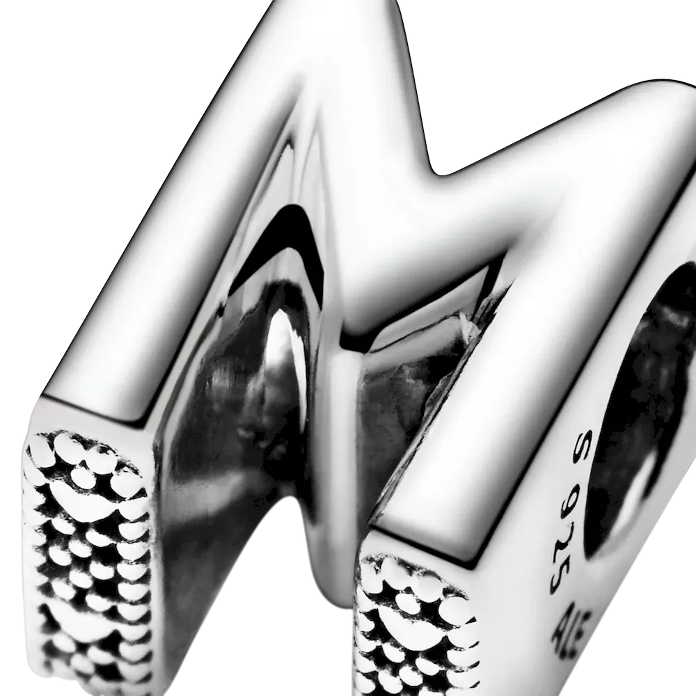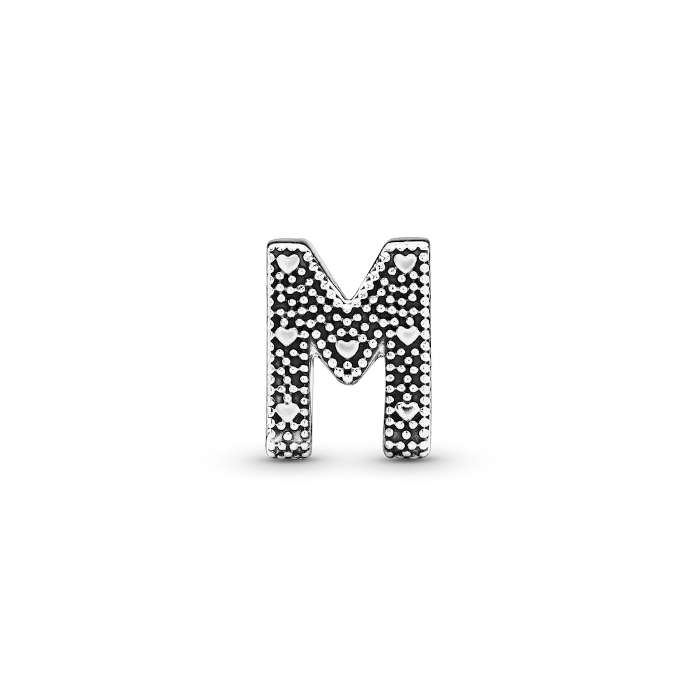 Tell your style story through our letter charms that let you spell out the words that mean the most to you. Monogram your Pandora Moments charm bracelet with important initials or create a personal message with the letter M. The reversible sterling silver charm is polished on the front and feature raised hearts and beads on the back. Add the letter M to your charm collection or gift it to someone that’s got a special connection to the letter.