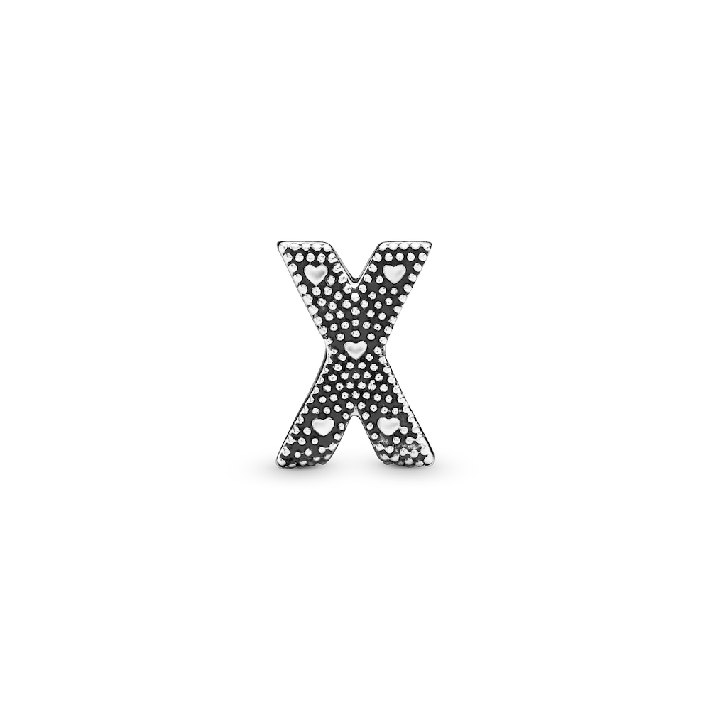 Tell your style story through our letter charms that let you spell out the words that mean the most to you. Monogram your Pandora Moments charm bracelet with important initials or create a personal message with the letter X. The reversible sterling silver charm is polished on the front and feature raised hearts and beads on the back. Add the letter X to your charm collection or gift it to someone that’s got a special connection to the letter.