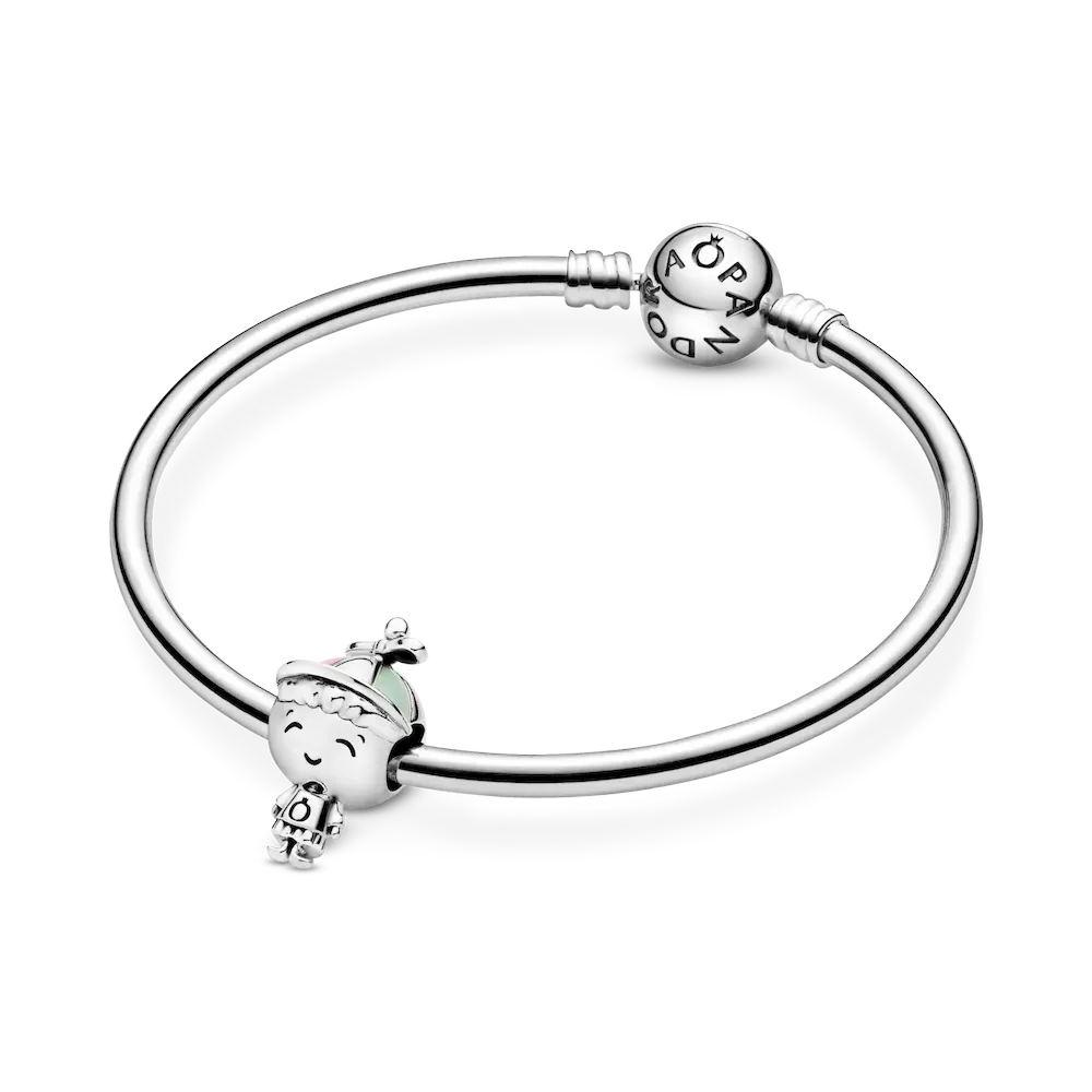 Add boyish charm to your bracelet with our character charm in sterling silver. The boy charm is topped with a rotating propeller cap in pastel-toned enamel and detailed on his belly with our Pandora crown O monogram. The charm threads onto your Pandora Moments bracelet through the head, leaving the body to dangle playfully with your every move.