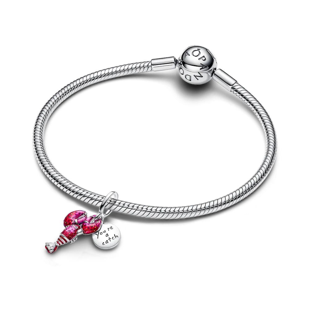 When they’re your lobster, wear a symbol that reflects that. Embrace an alternative way of showing your love with this sparkling lobster charm. Crafted from sterling silver, this charming clawed character features a prong-set heart-cut clear cubic zirconia as its tail, surrounded by glittering red enamel that creates a 3D effect. An engraved disc reading “you’re a catch” dangles from the bail, making this charm the perfect surprise gift for your Valentine, or yourself.