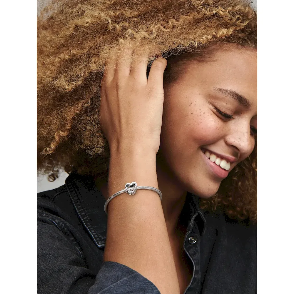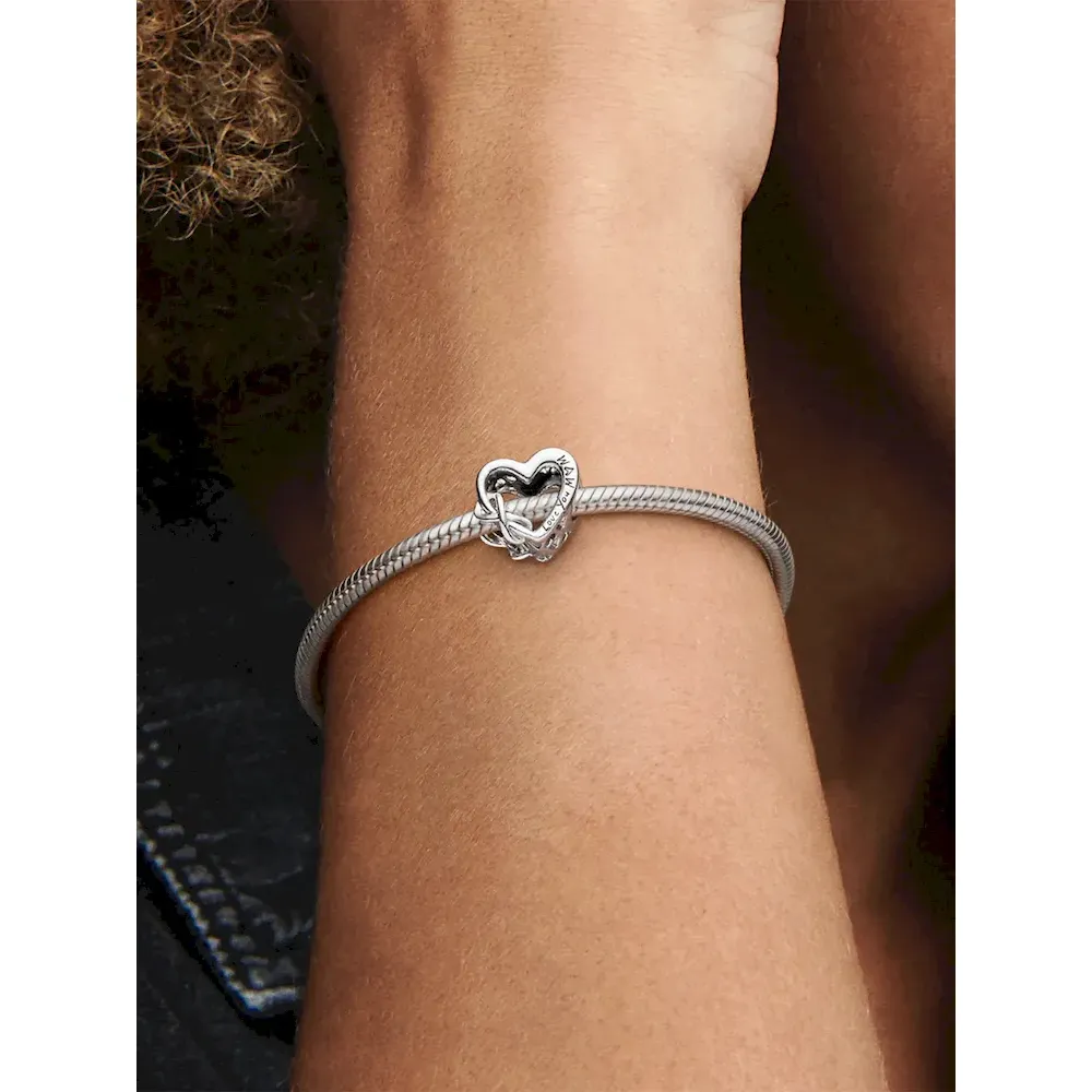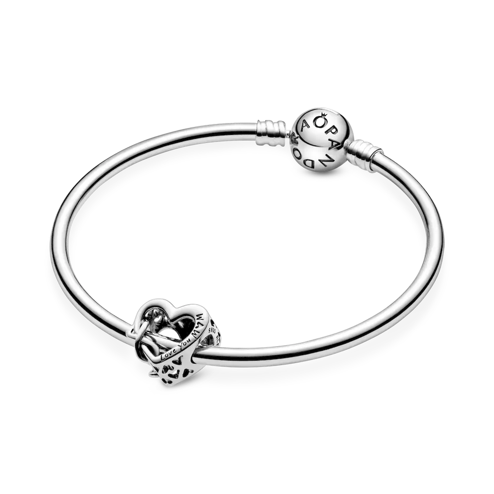 There’s nothing like the love between a parent and their child and this heart charm celebrates this bond. Made from polished sterling silver, this Love You Mom Infinity Heart Charm is composed of a heart shape with infinity wrapping with cut-out heart details. A small engraving on the side of the heart spells out the words