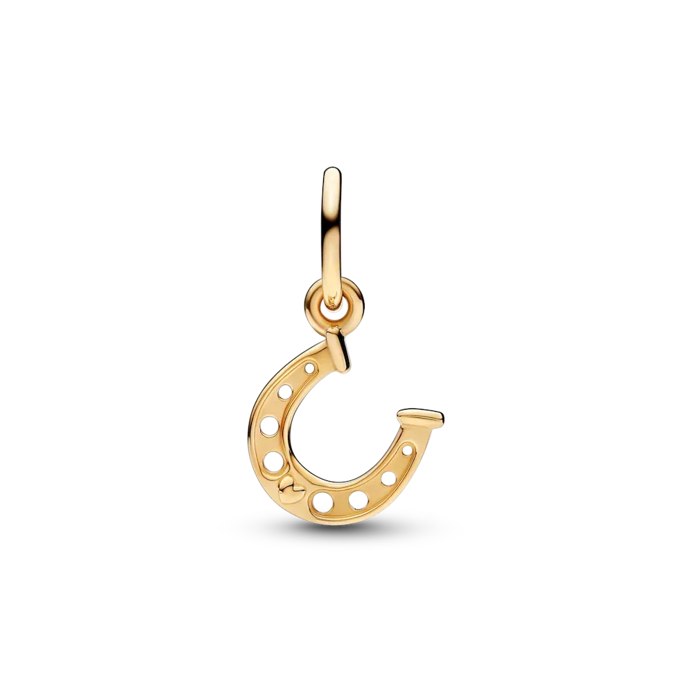 A symbol of love and luck for you or your nearest and dearest. The Lucky Horseshoe Dangle Charm is crafted in solid 14k gold for an elevated take on a classic symbol. The horseshoe is attached to the bail from one end and features a row of cut-out circles and a raised heart at the center on both sides.