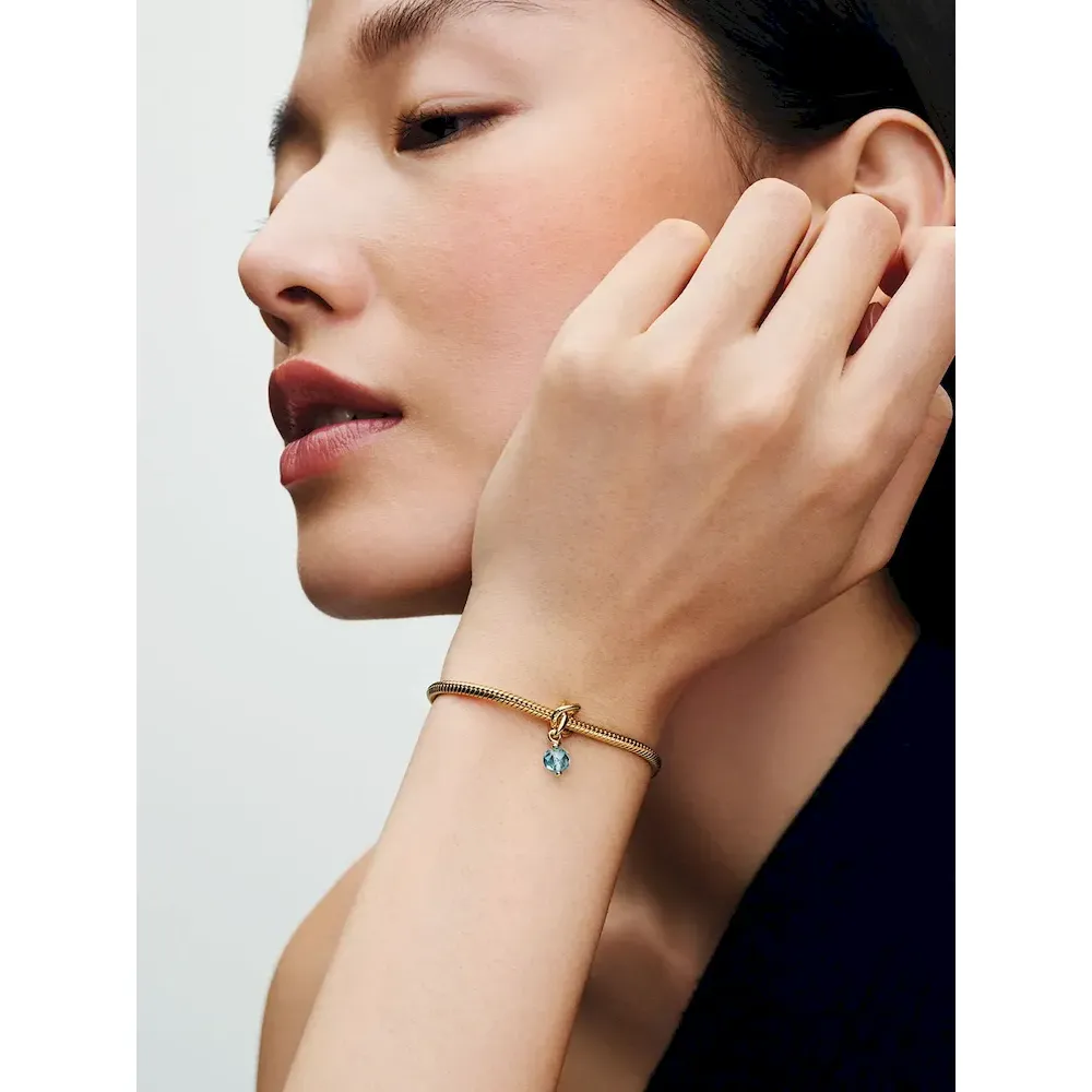Spring into style with the March Engravable Dangle Charm Necklace Set! Featuring the Rolo Chain Necklace—adjustable to three lengths for the perfect fit—and the Engravable Rectangle Tag Pendant, this set allows you to add your personal touch. The March Charm features a soft sea aqua blue crystal, dangling from a triple knotted infinity circle that symbolizes enduring love. The soothing blue hue brings fresh, rejuvenating energy, making it the perfect piece to celebrate growth and new beginnings.