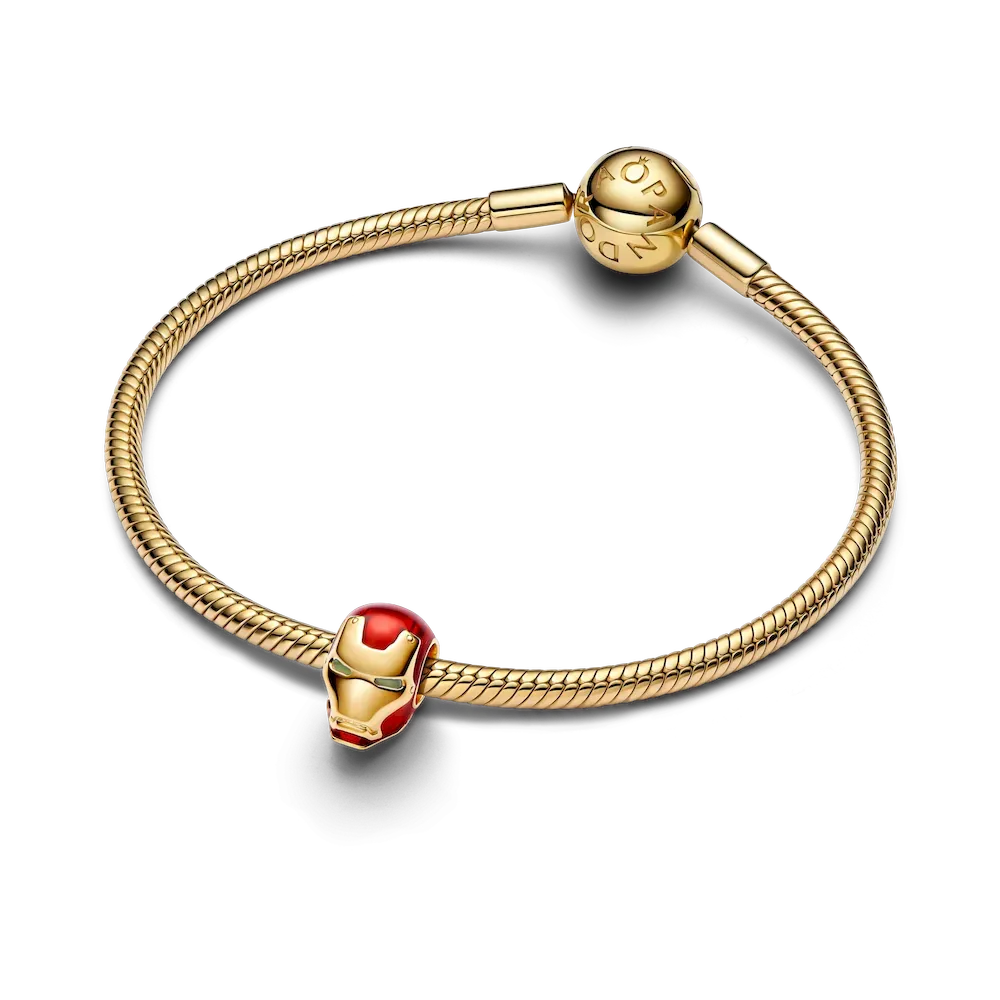 Power up your charm collection with two 14k gold-plated charms inspired by Marvel’s Iron Man. Includes the Marvel Iron Man Helmet Charm and the Marvel Iron Man Arc Reactor Dangle Charm with glow-in-the-dark details.