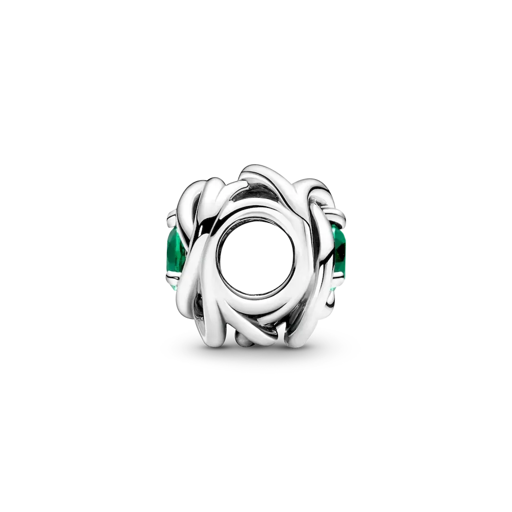 Add a pop of color to your bracelets and pendants with this Royal Green Eternity Circle Charm. This special piece is made in the shape of an infinity braid and is set with a deep green crystal at its center. Symbolizing eternity, add this sparkling charm to your styling to give your everyday jewelry a bright update.