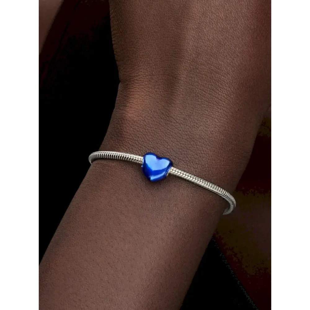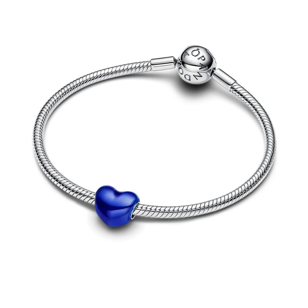 Add a colourful burst of romance to your look with our Metallic Blue Heart charm. Decorated in bright blue enamel with a transparent finish that enables the sterling silver of the charm beneath to shine through. A gift for yourself or someone special, this piece radiates with love – an instant shot of vibrancy for your favourite charm carrier.