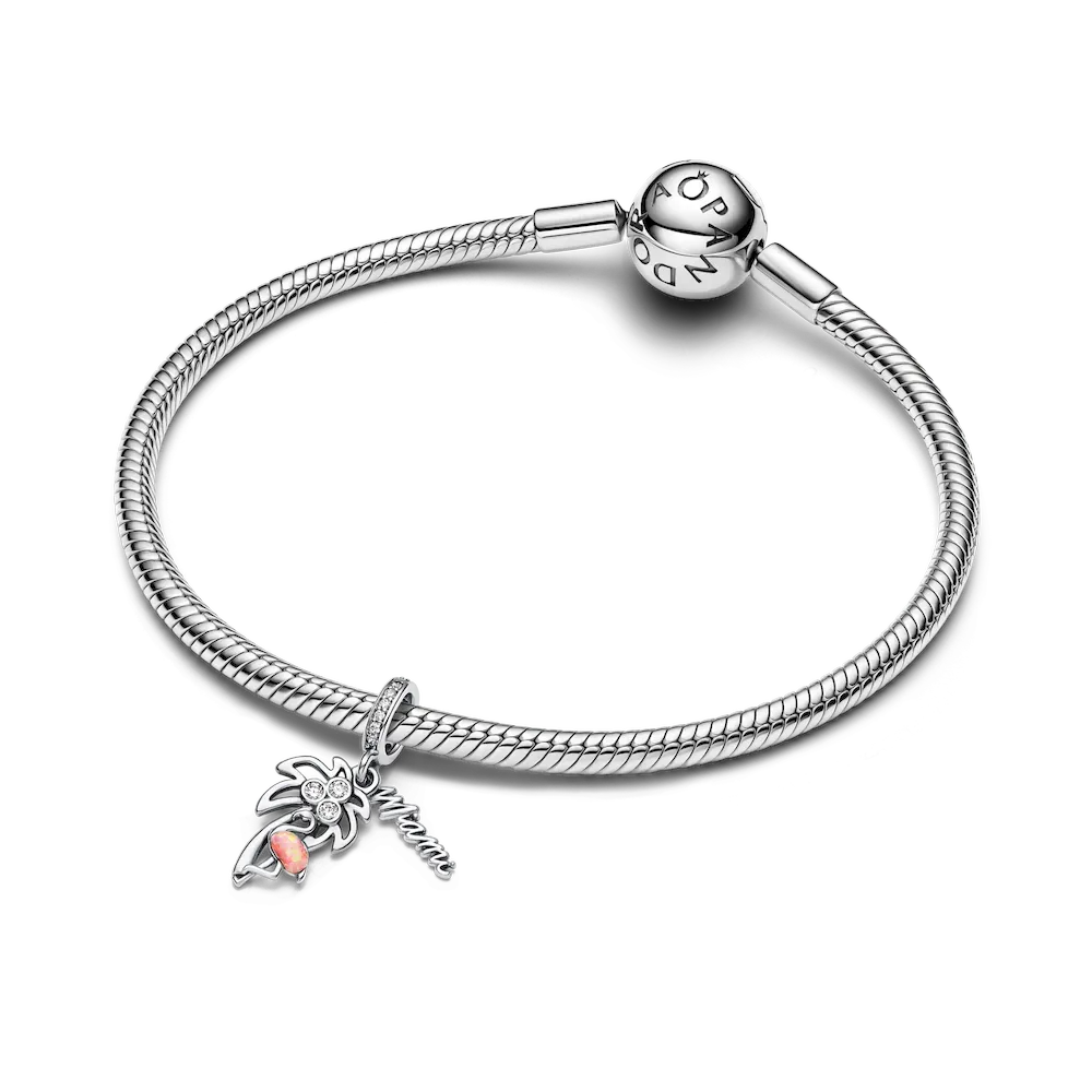 Celebrate the magic of Miami with a palm tree, flamingo, and handwritten ‘Miami’ script, all set with stones and enamel details.