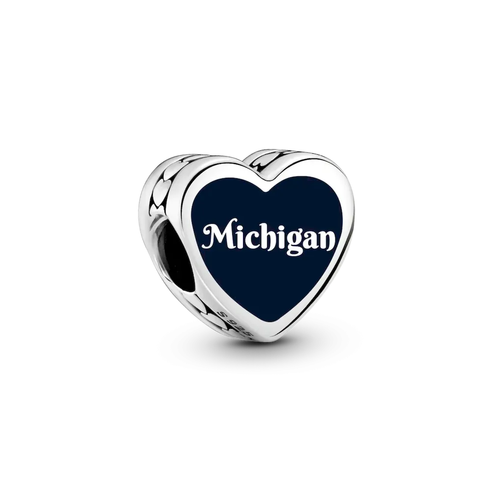 Great Lakes love in a tiny charm, this Michigan heart in sterling silver is perfect for mitten-state fans.