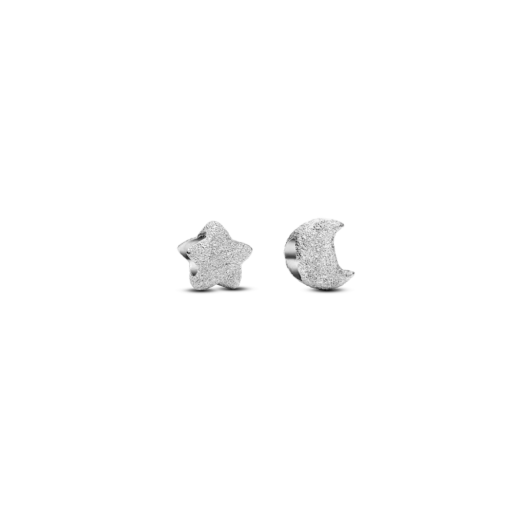 A moon for dreams. A star for wishes. Made mini. This textured sterling silver charm duo brings subtle sparkle and symbolic shine to your everyday — tiny reminders to always follow your inner light.