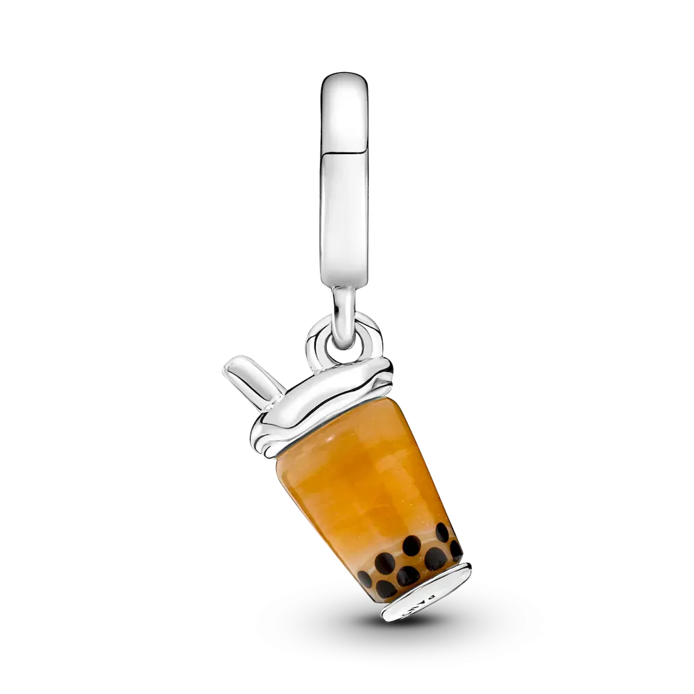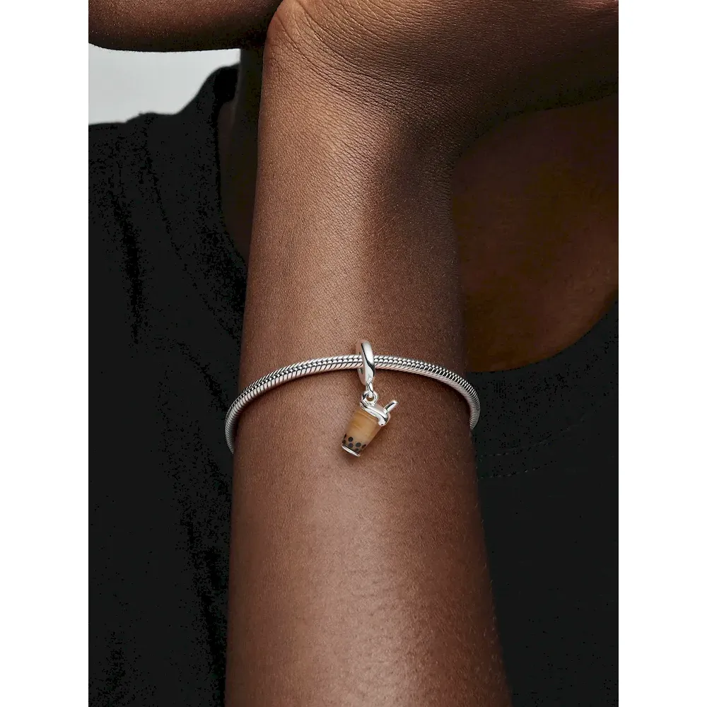 Love bubble tea? Carry your favorite drink in mini wherever you go with the Murano Glass Bubble Tea Dangle Charm. This boba tea charm features a specially crafted Murano glass, with a true-to-life milky white to brown gradient and soft black tapioca pearls. Overflowing milk foam in sterling silver puts the finishing touch on this miniature recreation of the iconic drink.