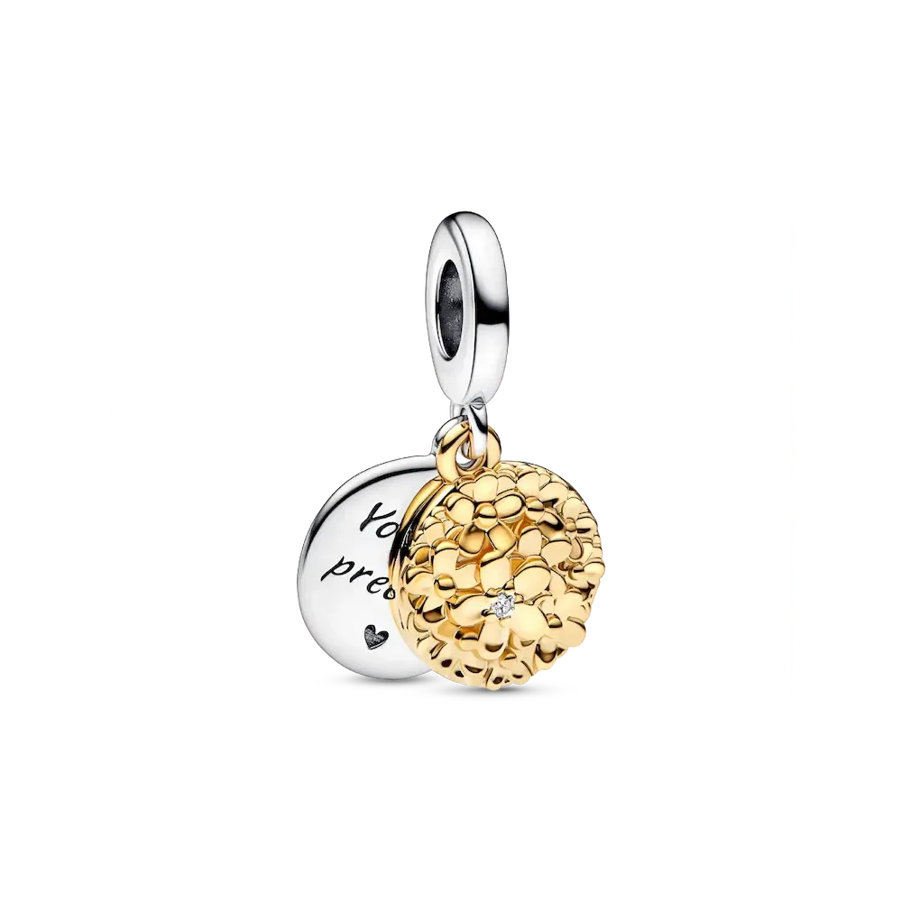 An exclusive charm for My Pandora Gold members. Detailed with layers of raised daisies and featuring a sparkling lab-grown diamond, this floral-inspired charm is engraved with the meaningful message “You are precious <3.