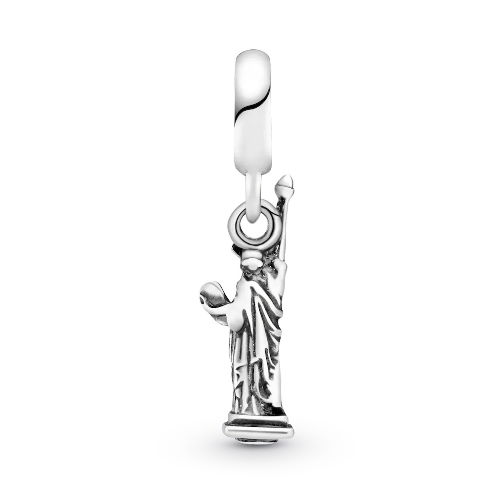 New York is a city that never sleeps and this landmark charm in sterling silver is sure to make your bracelet come alive. Shaped as the Statue of Liberty, a symbol of freedom and emblem of friendship, it’s detailed with all the hallmarks of the famous figure, including a torch and book. Wear the hand-finished dangle on Pandora Moment bracelets as a reminder of something you love about the city.