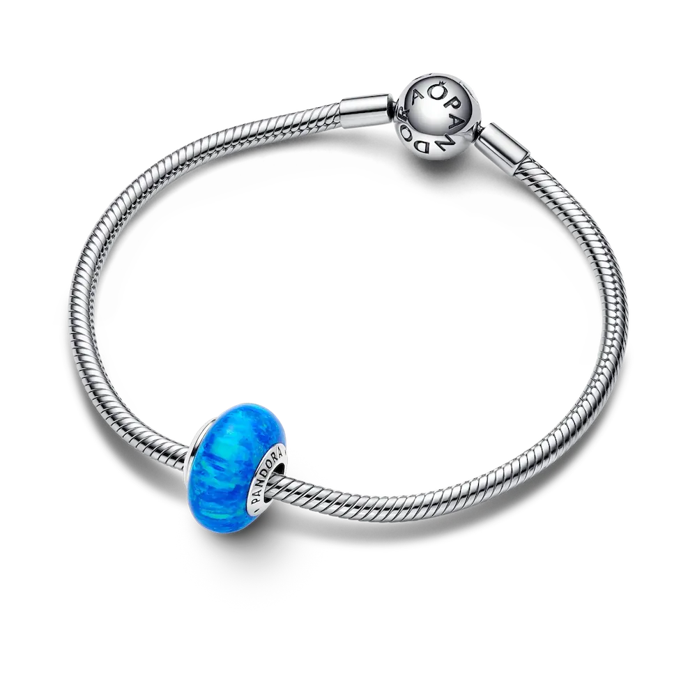 Add a dash of blue to your jewelry collection. Featuring a lab-created opal with multi-colored specks and glittery streaks that catch the light. Bring some opalescent shine to your stack with a charm inspired by the shimmering blue of the ocean.