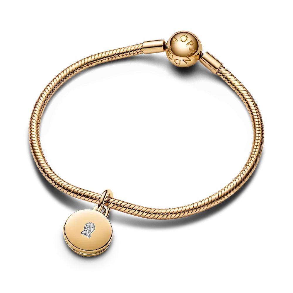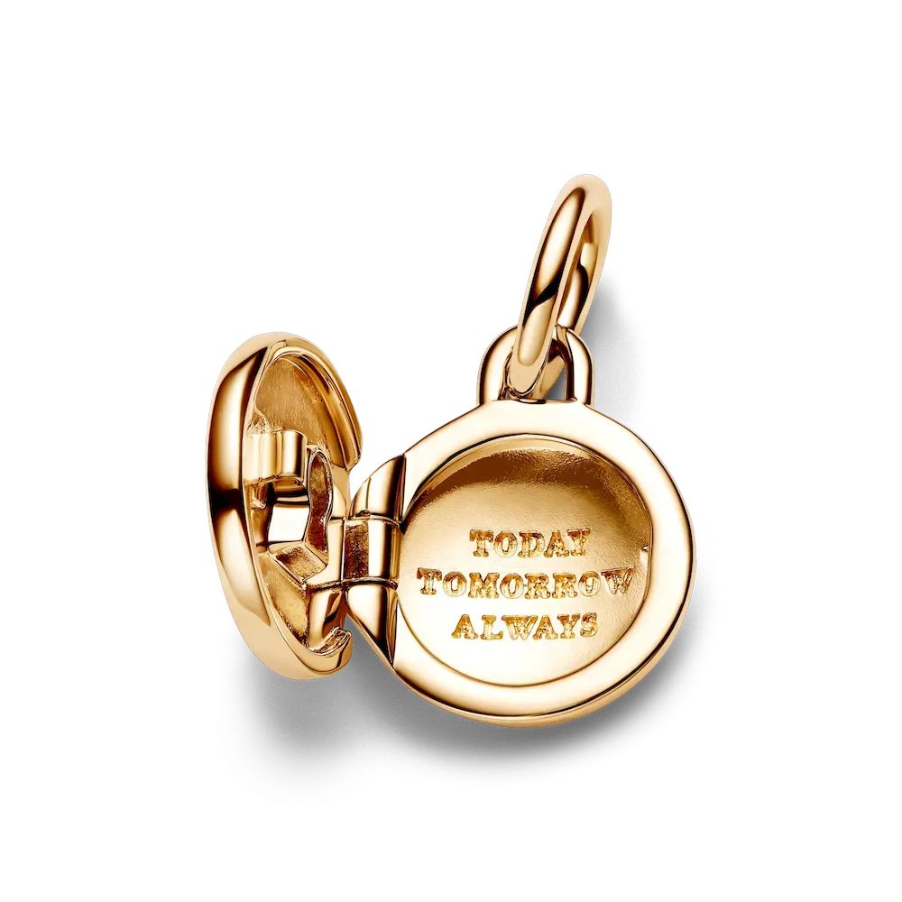 Keep what’s most dear to you close to your heart with the Openable & Engravable Love Locket Dangle Charm. This 14k gold-plated locket charm features a clear cubic zirconia stone on the front in the shape of a keyhole, and opens and closes securely so you can keep a tiny picture, note or lock of hair inside. The inside of the locket is engraved with the message