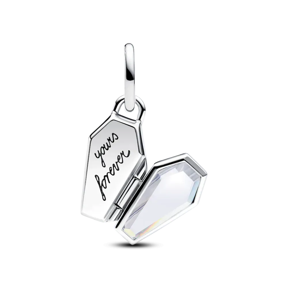 Open after dark — if you dare. Wear the scare with our glow-in-the-dark coffin charm. Featuring the engraved message ‘Yours forever’, add this sterling silver charm to your Halloween rotation to celebrate spooky season.