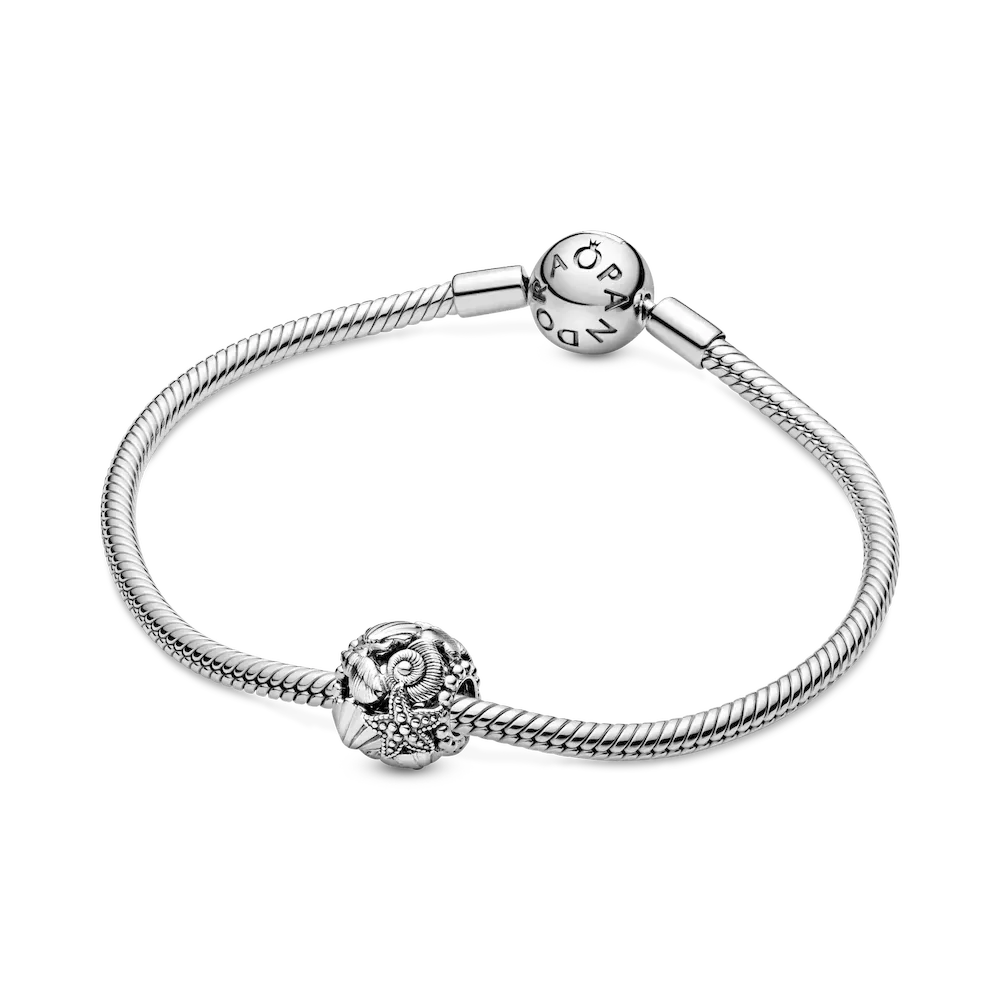 Dive into summer with this Openwork Starfish, Shells & Hearts Charm, inspired by the treasures hidden underneath the ocean’s surface. The sterling silver openwork design is decorated with different types of seashells, starfish and heart details with chiseled and beaded textures, which create an intricate and eye-catching finish. Wear it to show your love for everything the ocean has to offer or simply as a way to add a little sparkle to a summer outfit.