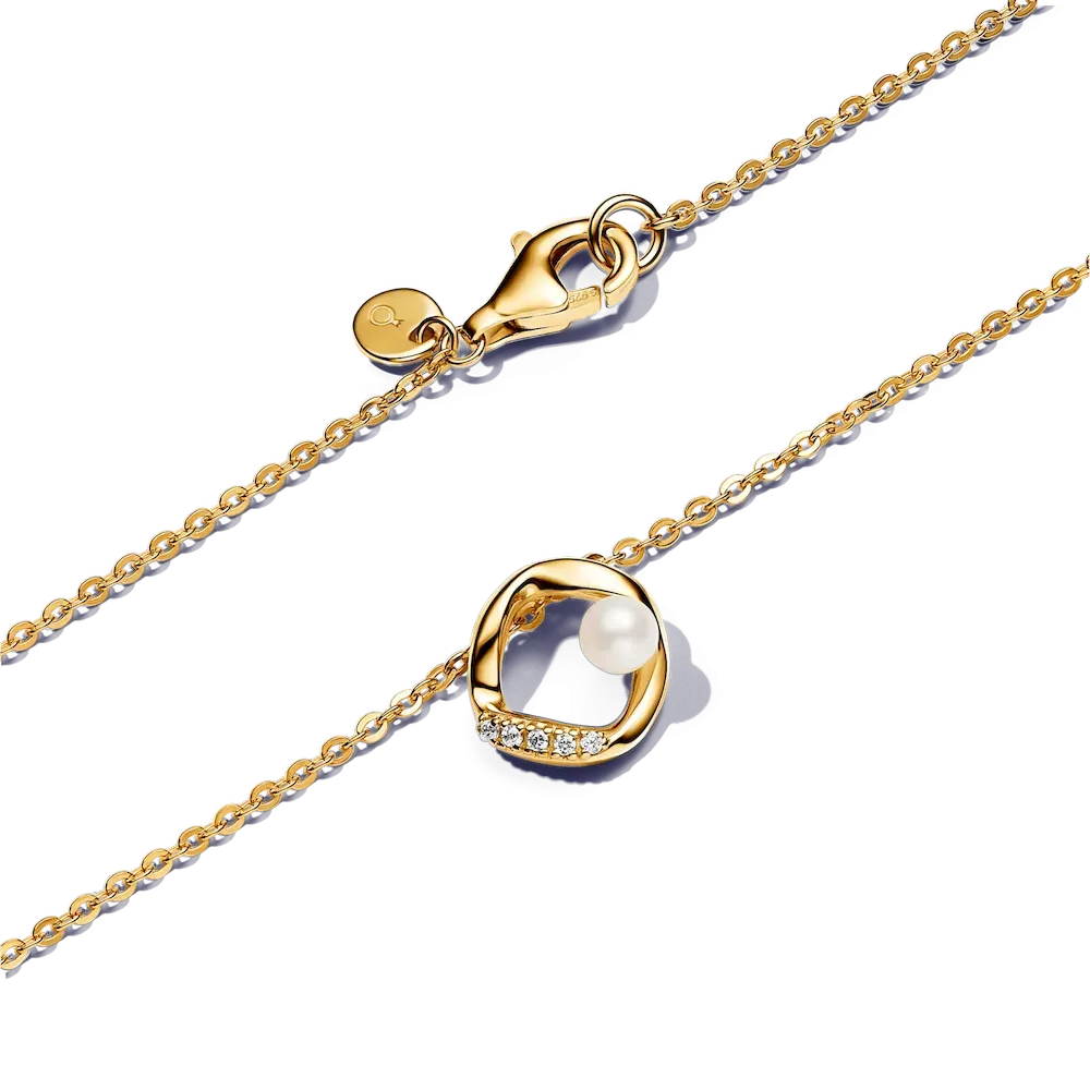 Organically Shaped Pavé Circle & Treated Freshwater Cultured Pearl Collier Necklace
