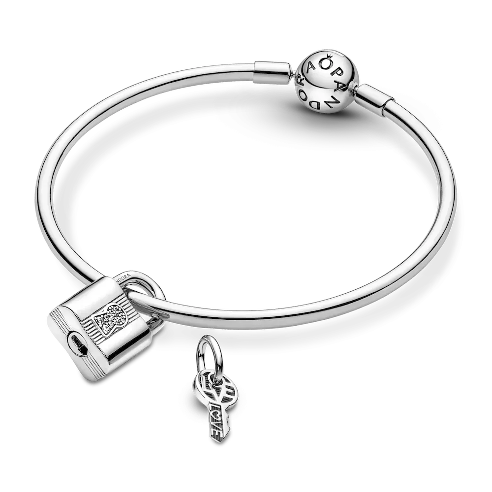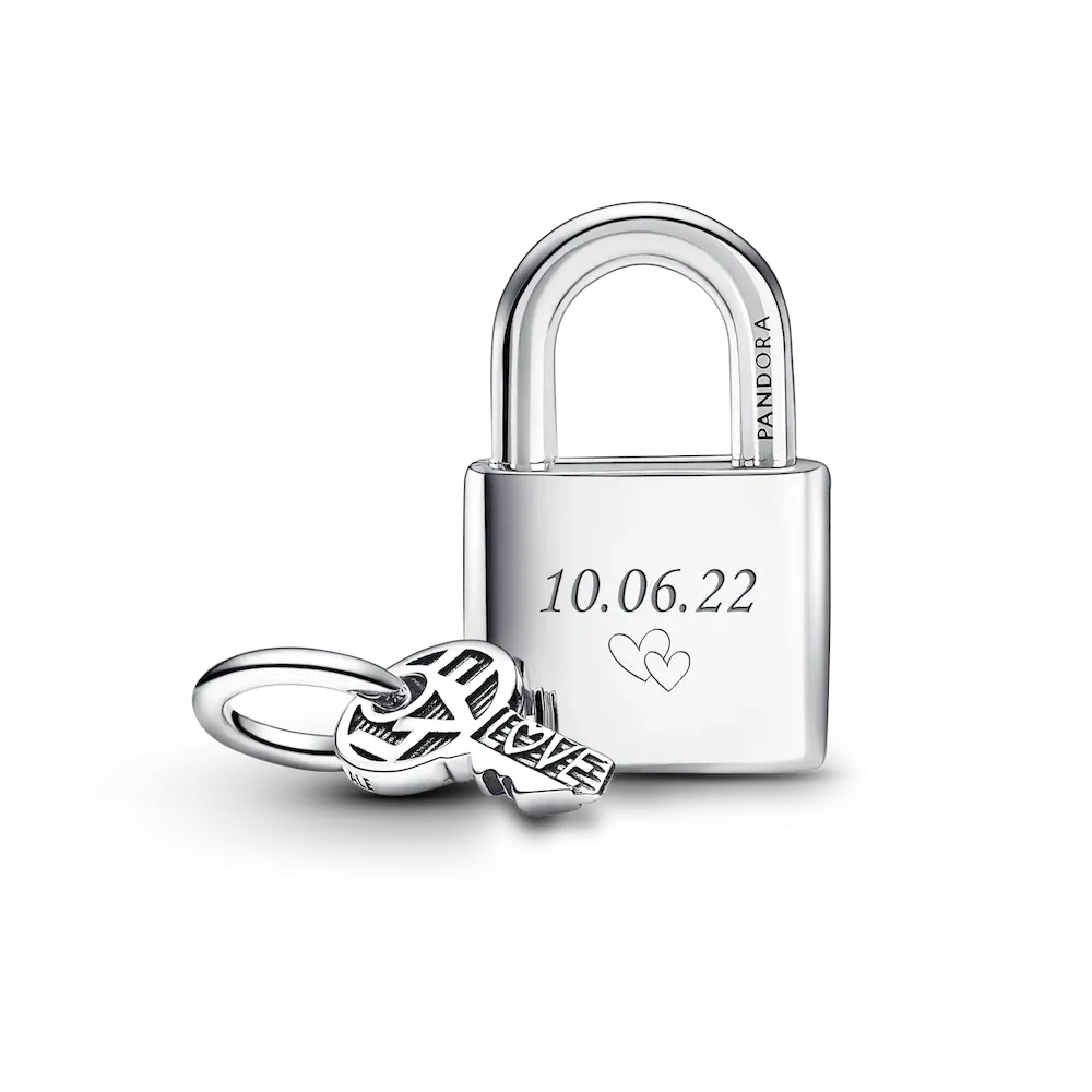 Cherish the special connection you share with loved ones with this Padlock and Key Dangle Charm. Featuring two parts, the key is also a charm in itself. Place it next to the padlock and style the two together on your jewelry, or gift it to a loved one, so only they have the power to unlock your padlock. Inspired by the locks placed on bridges by lovers all around the world, this sterling silver Padlock and Key Charm is the perfect symbol to capture your love. Compatible with necklaces and bracelets, wear yours around your neck as a pendant or as a charm on your bracelet and let the one you love carry the key to your padlock – and your heart. Please note: the key should not be worn inside the padlock.